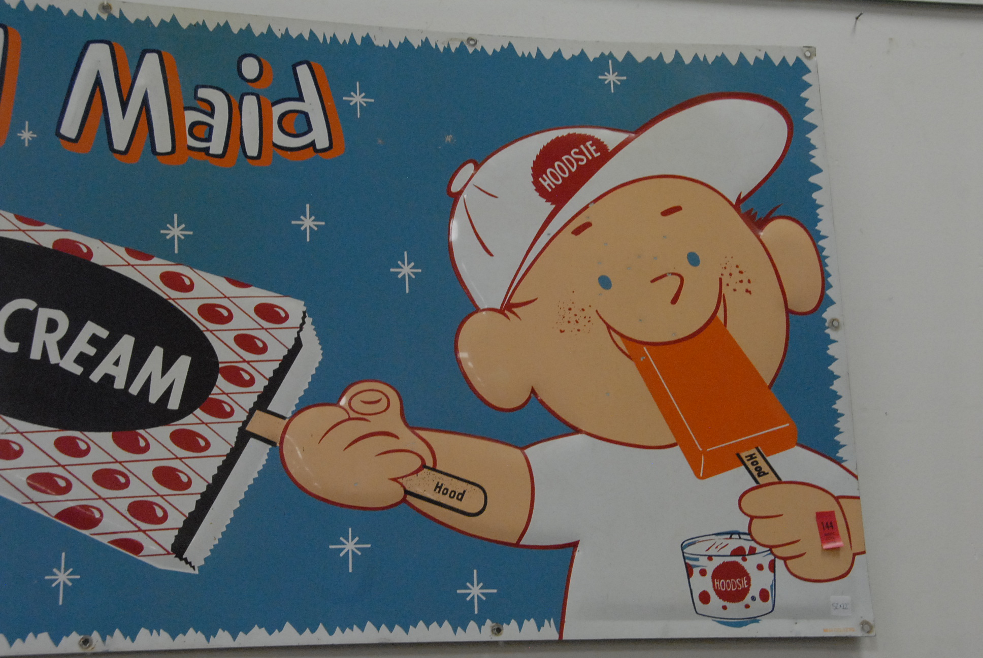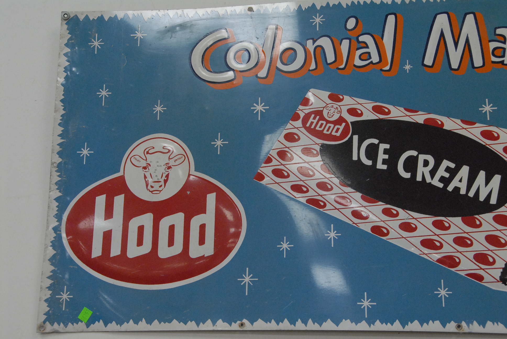 Colonial Maid Hood Ice Cream metal advertising sign, 52 x 22.