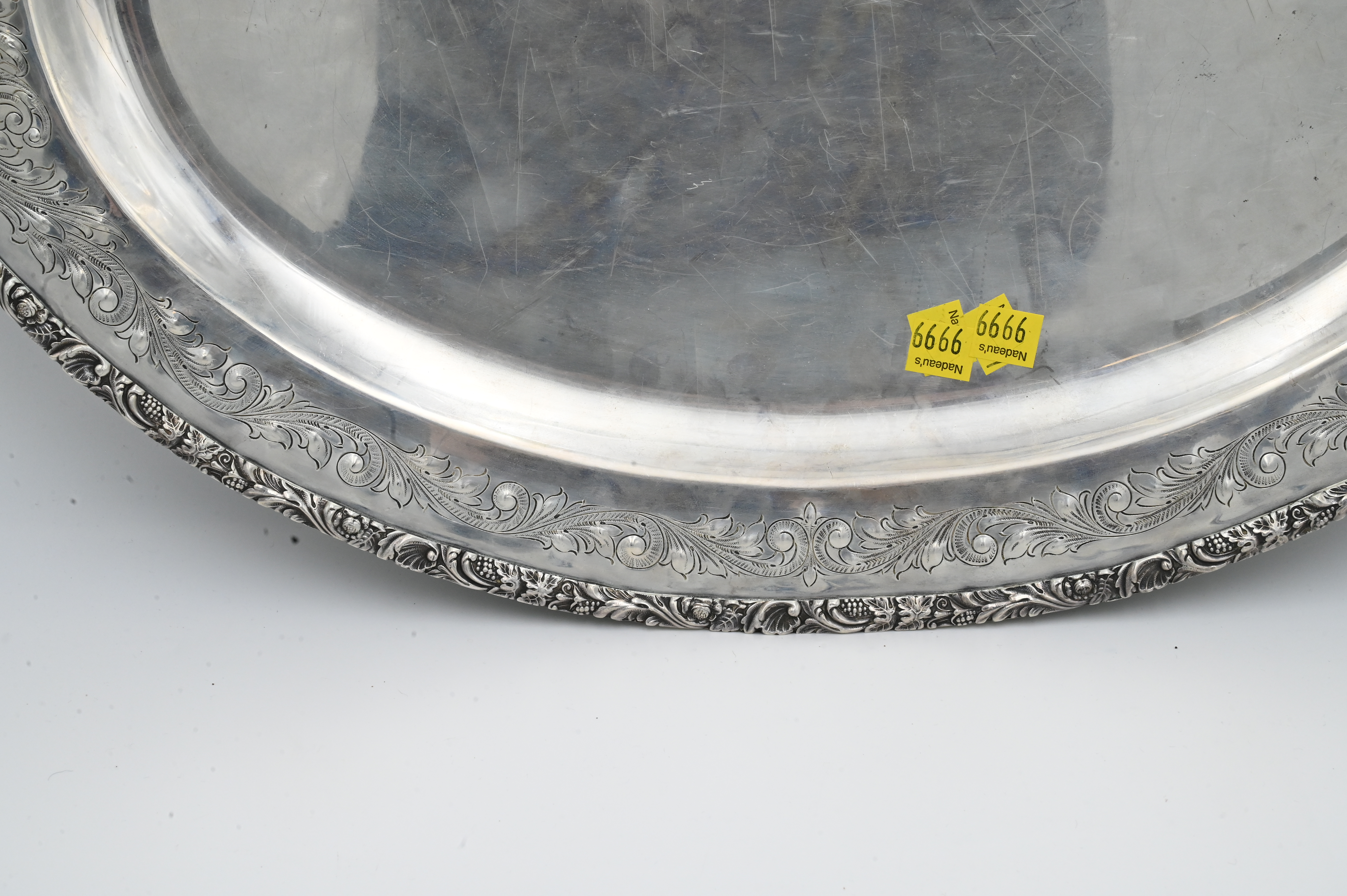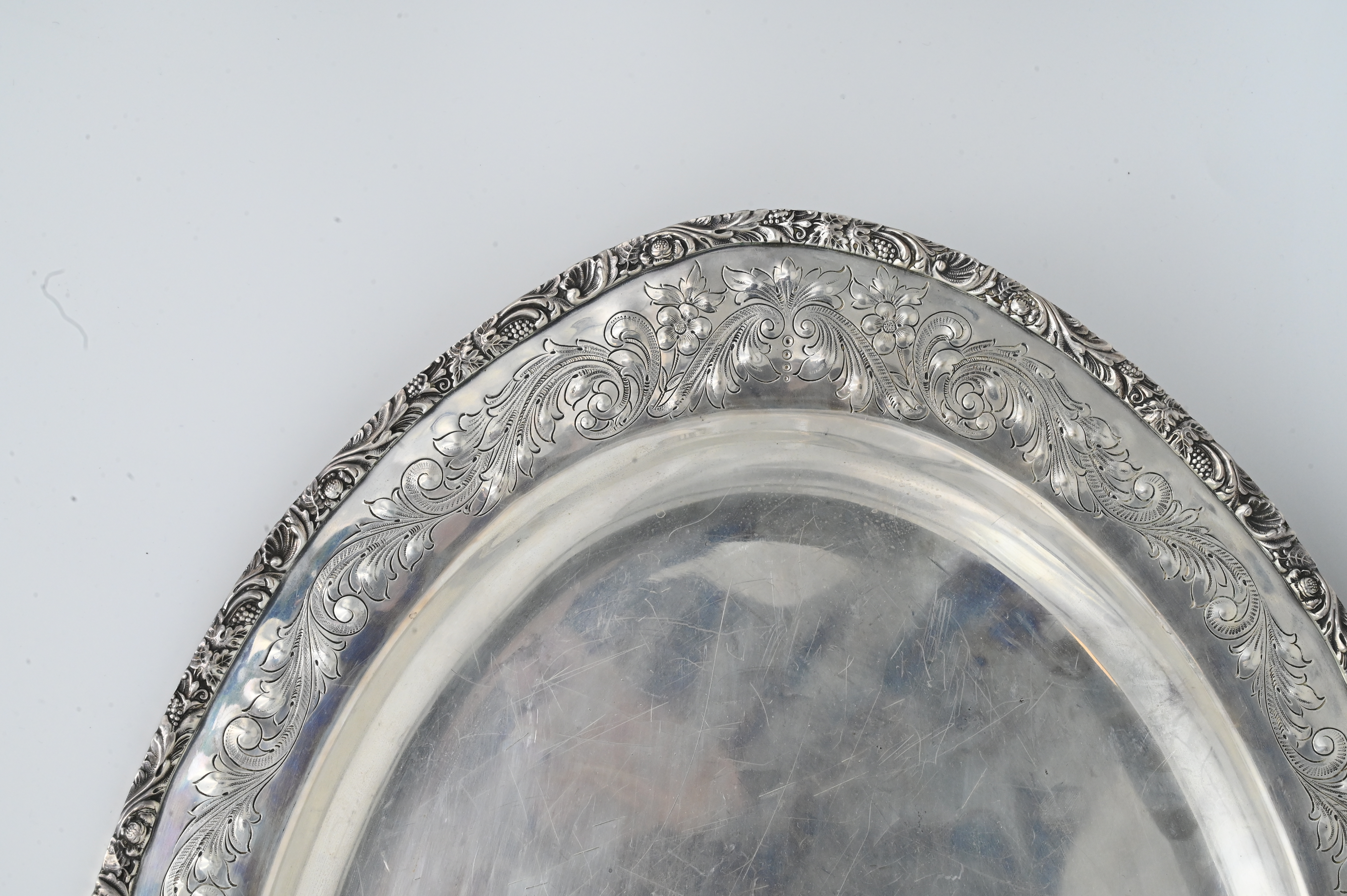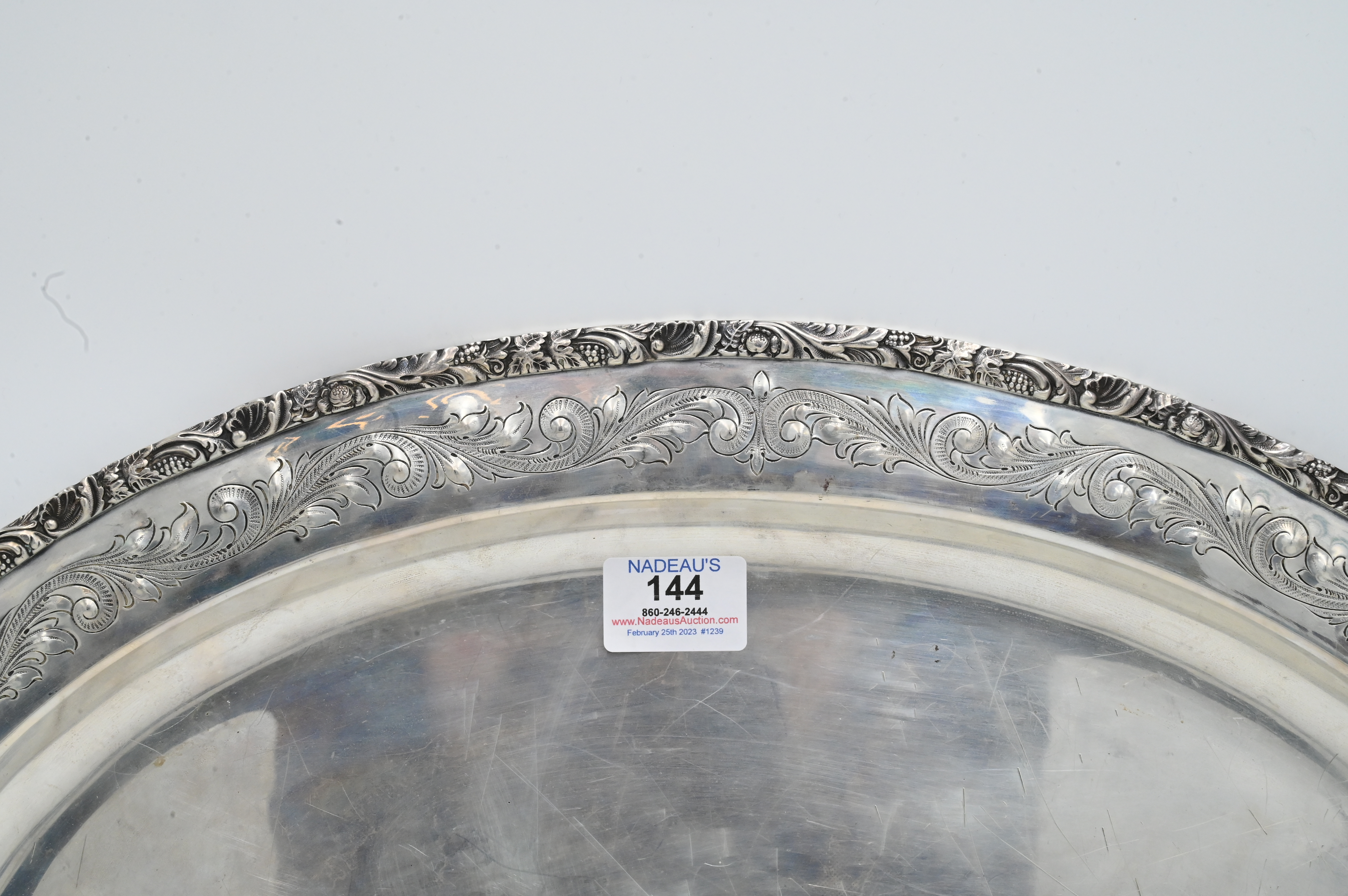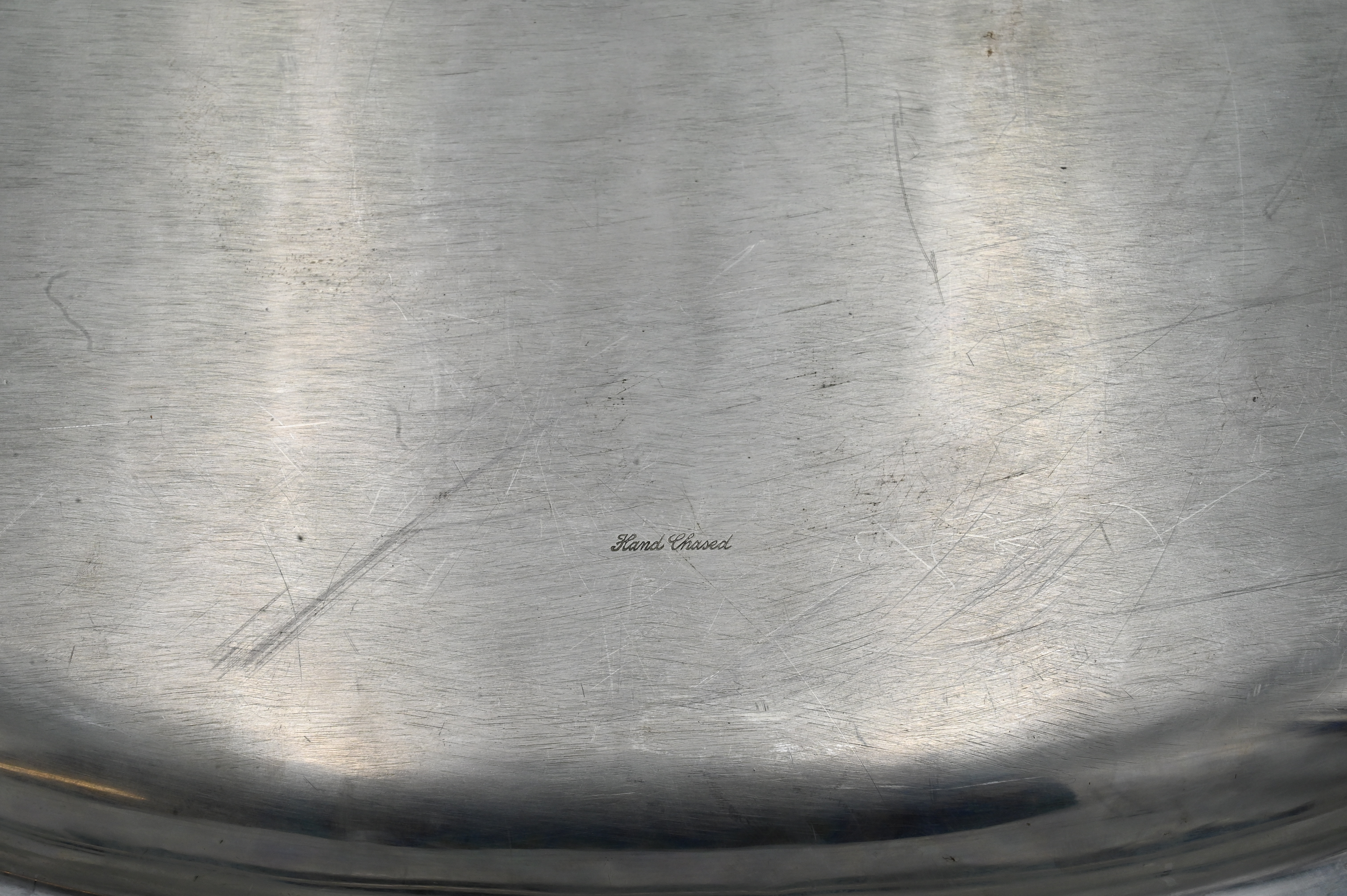 Durham Silver Company Sterling Silver Hand Chased Oval Serving Tray, 16 1/4″ x 22 3/4″, 65.2 t.oz.