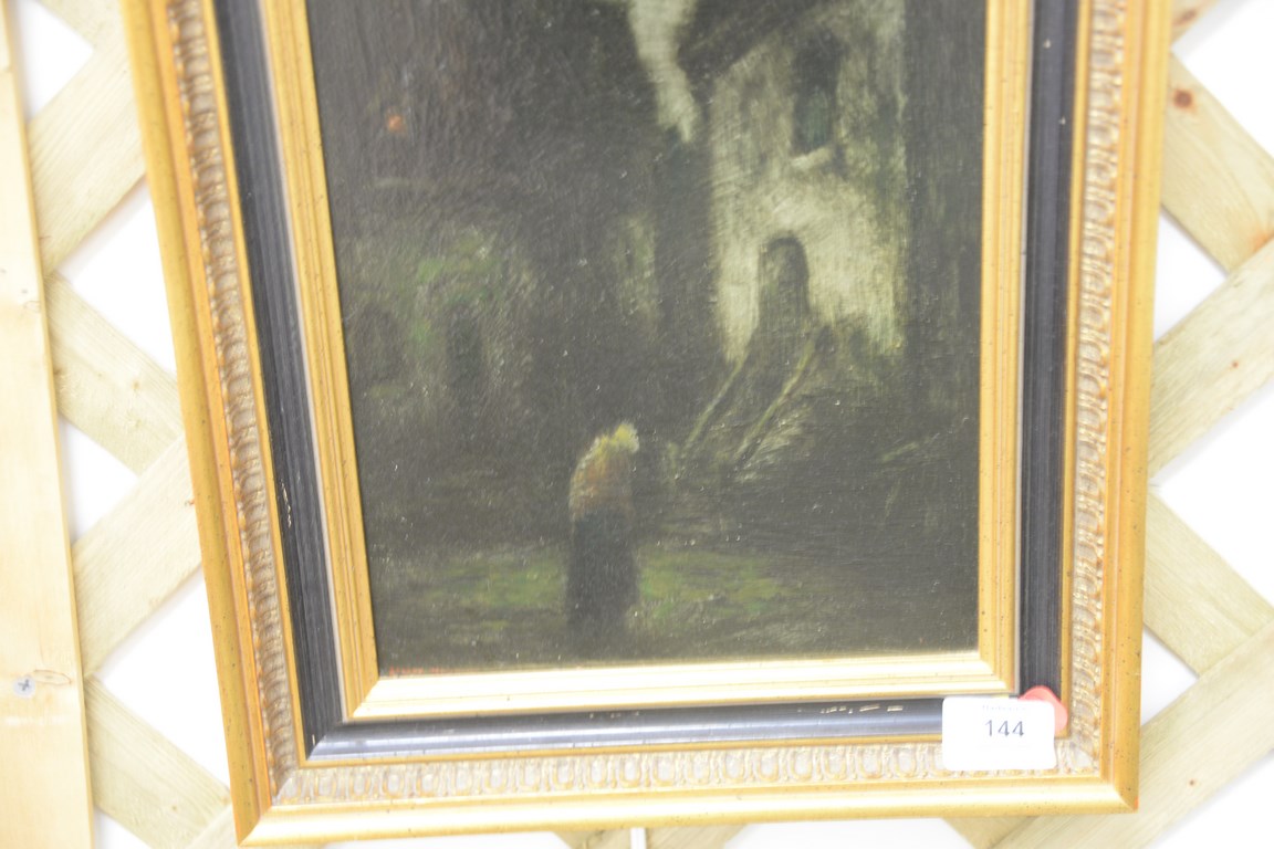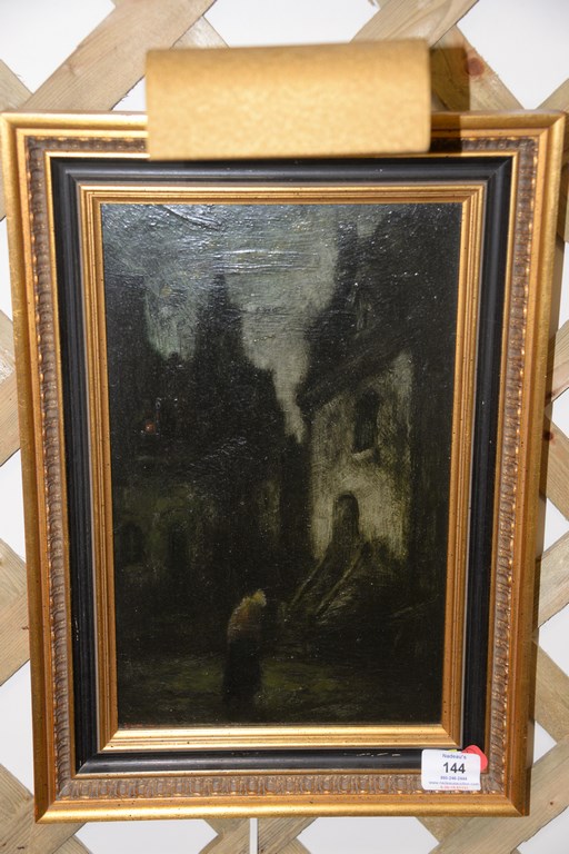 Lot 144: Eugene Higgins 1874-1958 oil on board Bum in the Dark signed lower left Eugene Higgins. 14 x 8 1/2