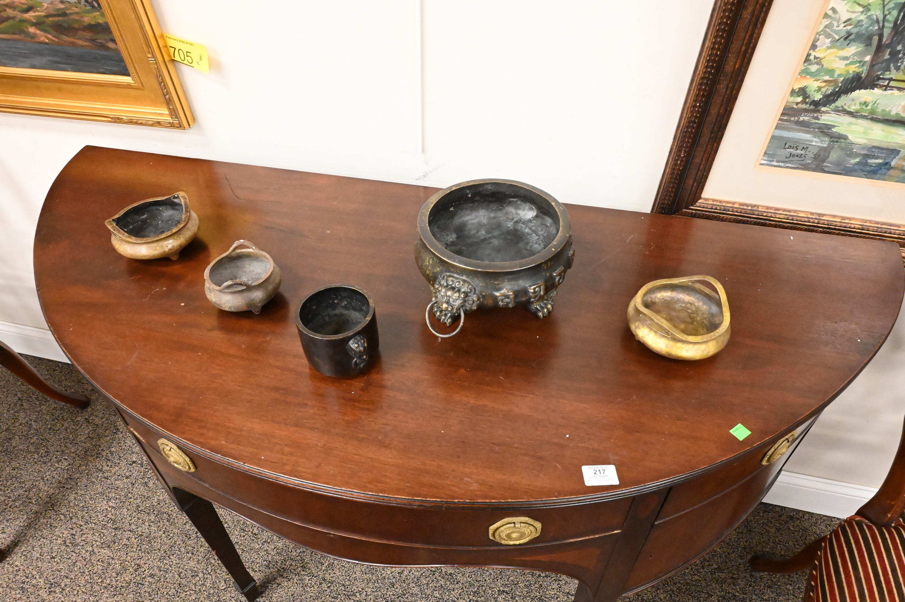All lots are sold “AS IS.” Condition reports are available by request and answered in the order received starting the week of the sale. Our in-house buyer’s premium (for absentee and phone bidders) is 25%, with a 3% discount for payments by cash, check, wire, or Zelle. If bidding through a third-party platform, payment must be made through that platform. The online buyer’s premium for all third-party sites (Invaluable and Live Auctioneers) is 32%, third party platform users are not eligible for any discounts. Our buyer’s premium on our own website (bid.NadeausAuction.com) is 30%, with a 3% discount for cash, check, wire, or Zelle payments for buyers using only our site or bidding in-house.