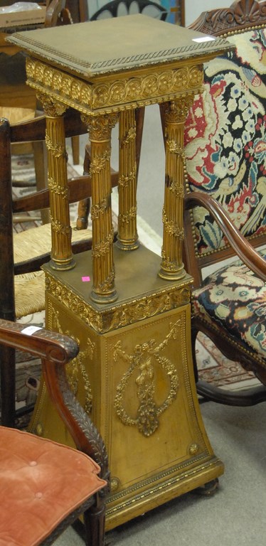 Gilt Louis XVI style pedestal, ht. 45in.