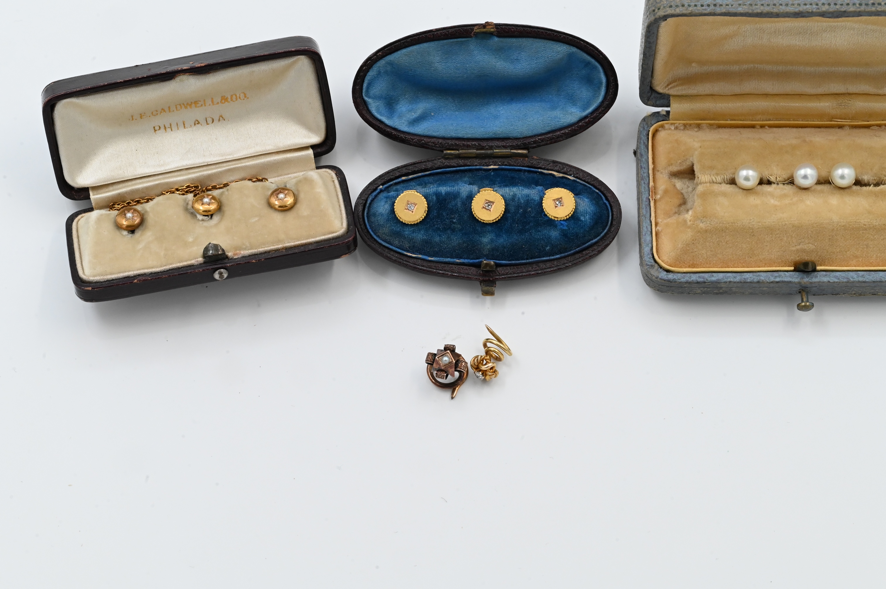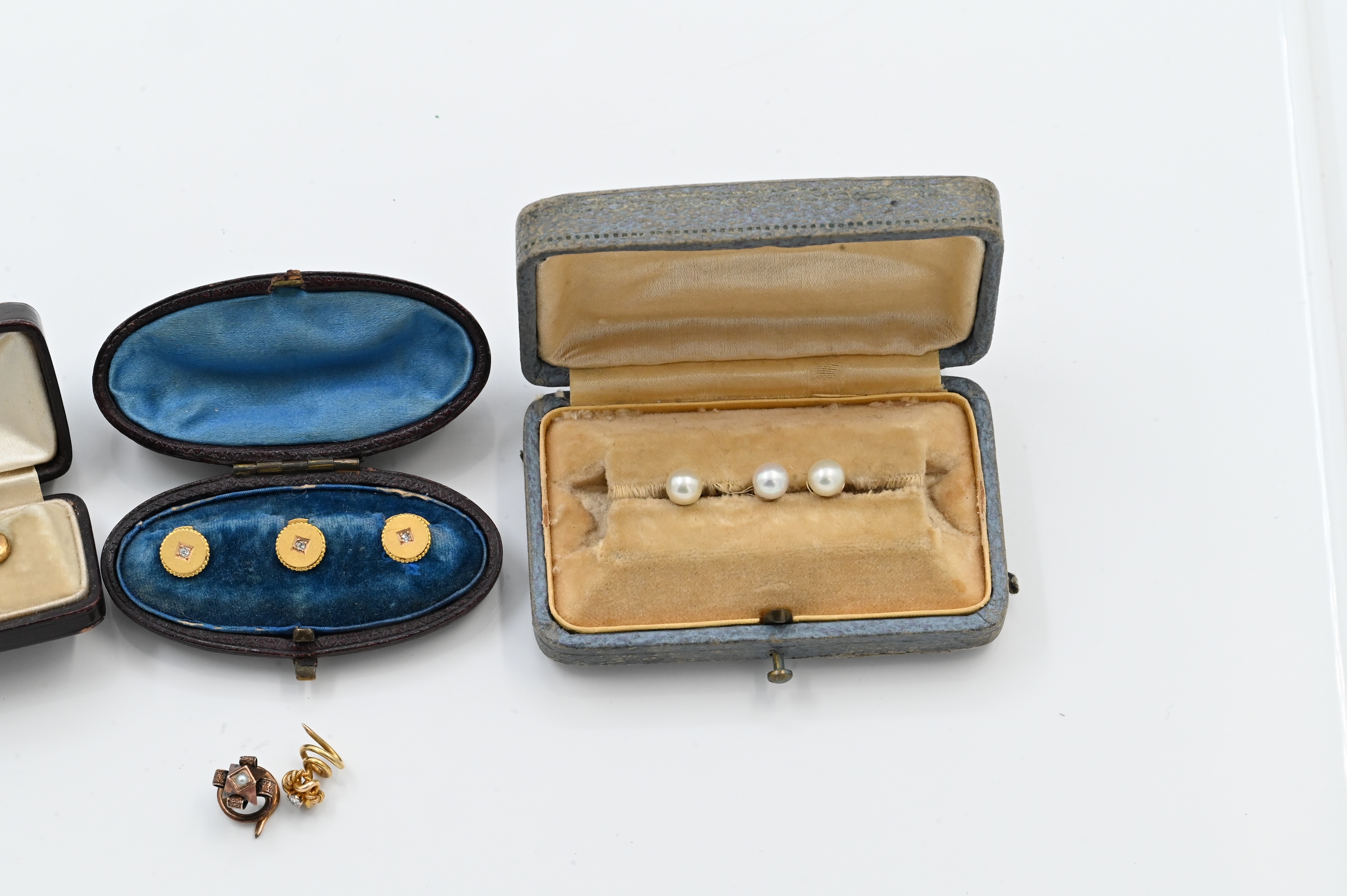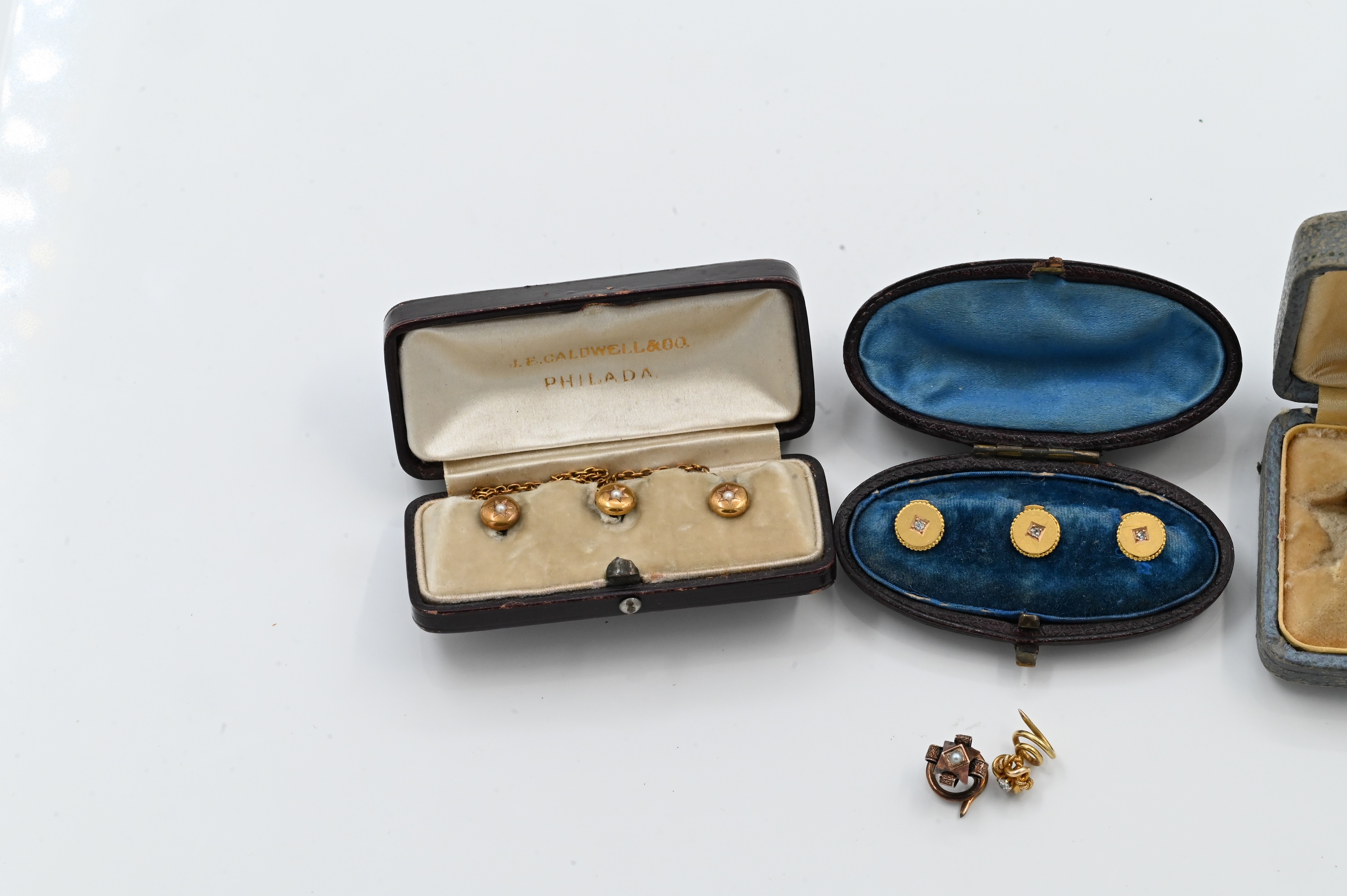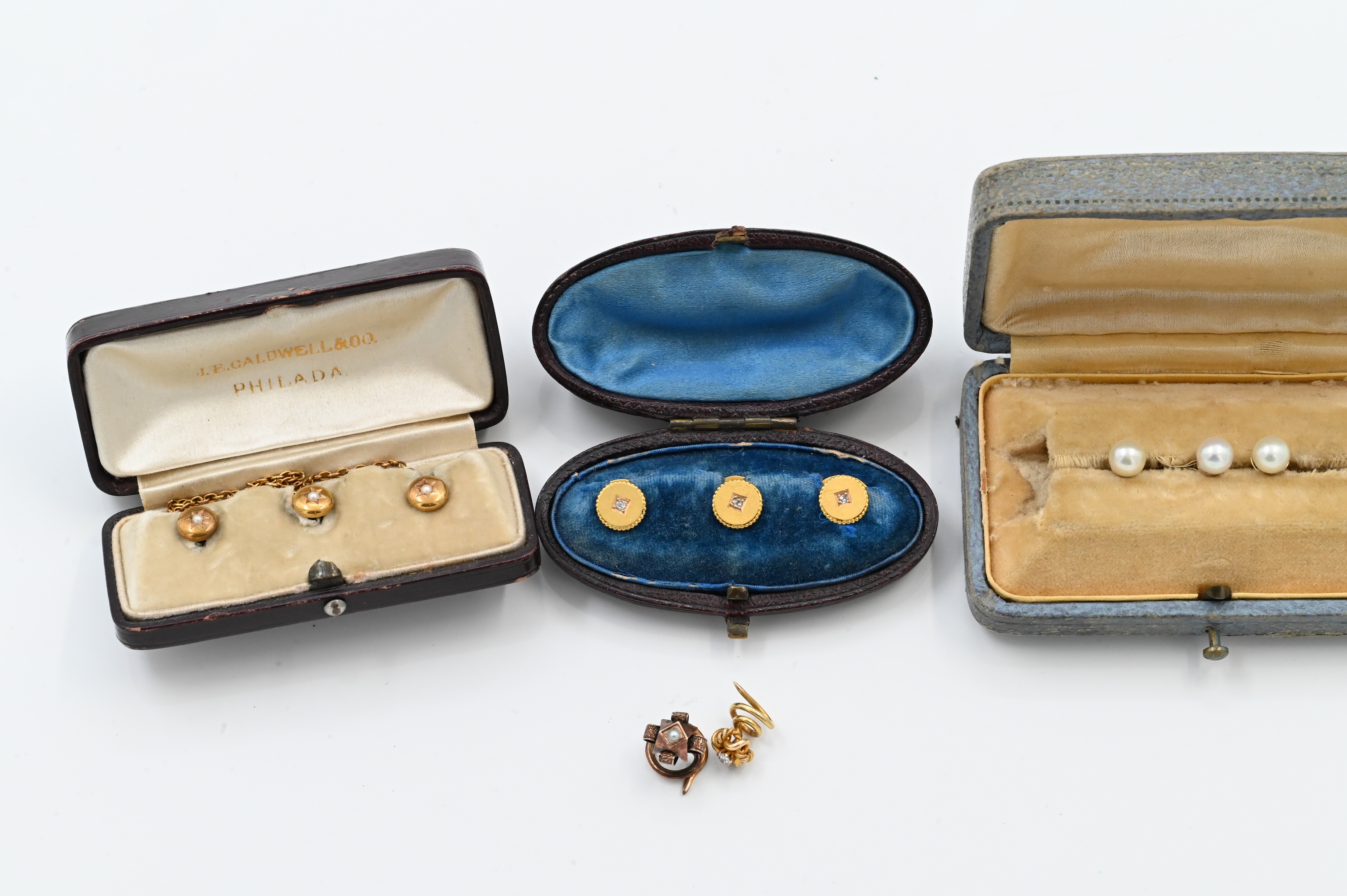 to include a set of three cased 15K gold and diamond dress studs, set of three cased pearl and