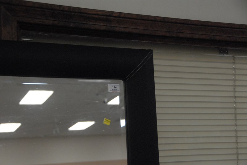 Lot 144: Leather framed bevel mirror, total ht. 72 in. wd. 36 in.