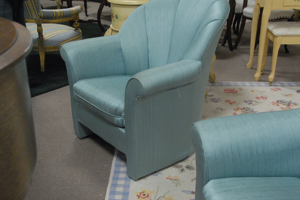 Pair of contemporary fully upholstered armchairs.
