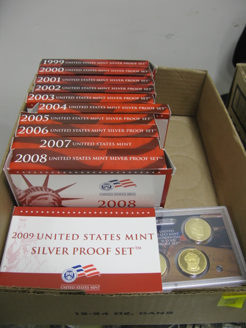 Proof sets 1999 -2009 silver US mint proof setsplus 7 two dollar bills