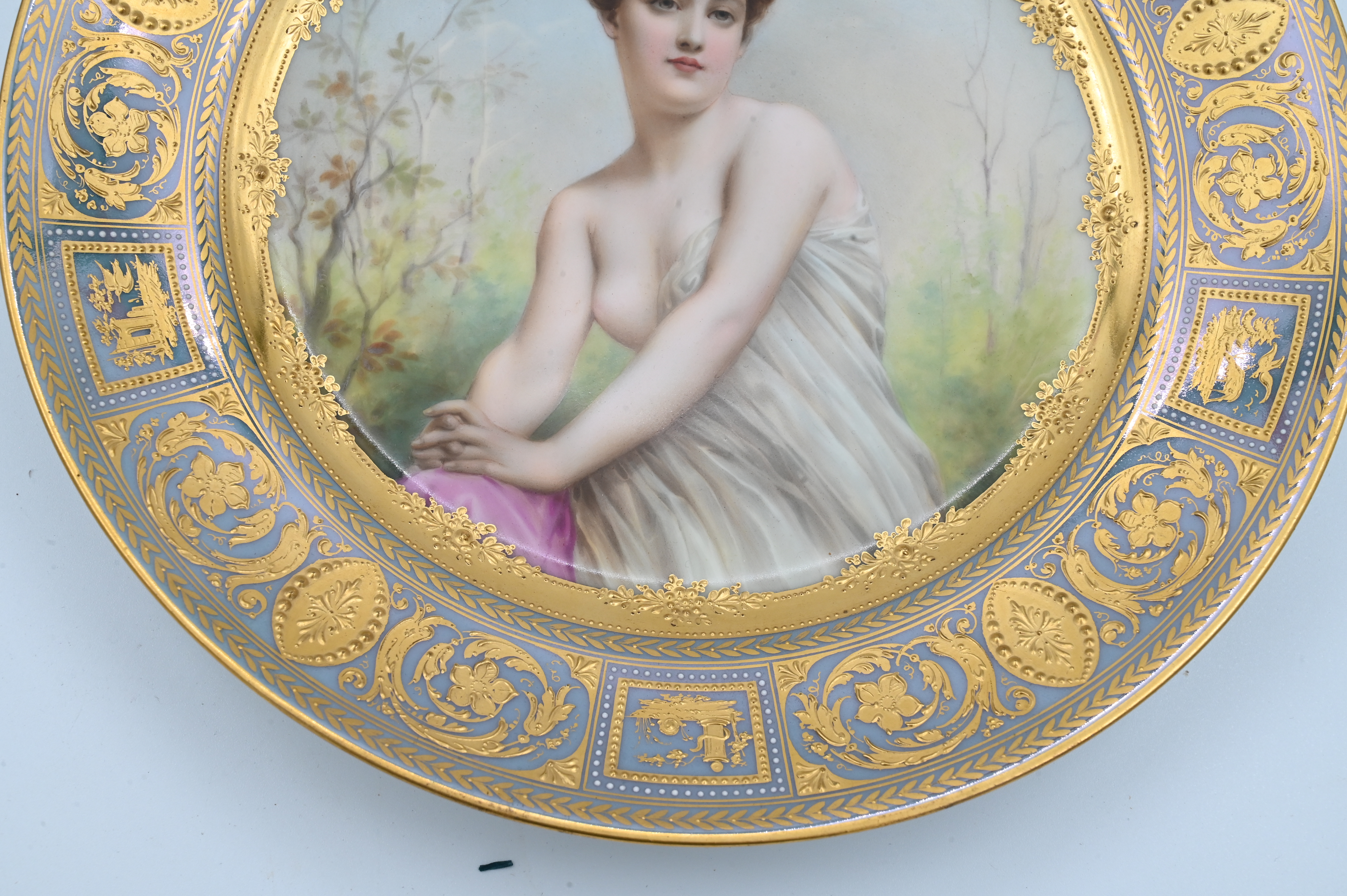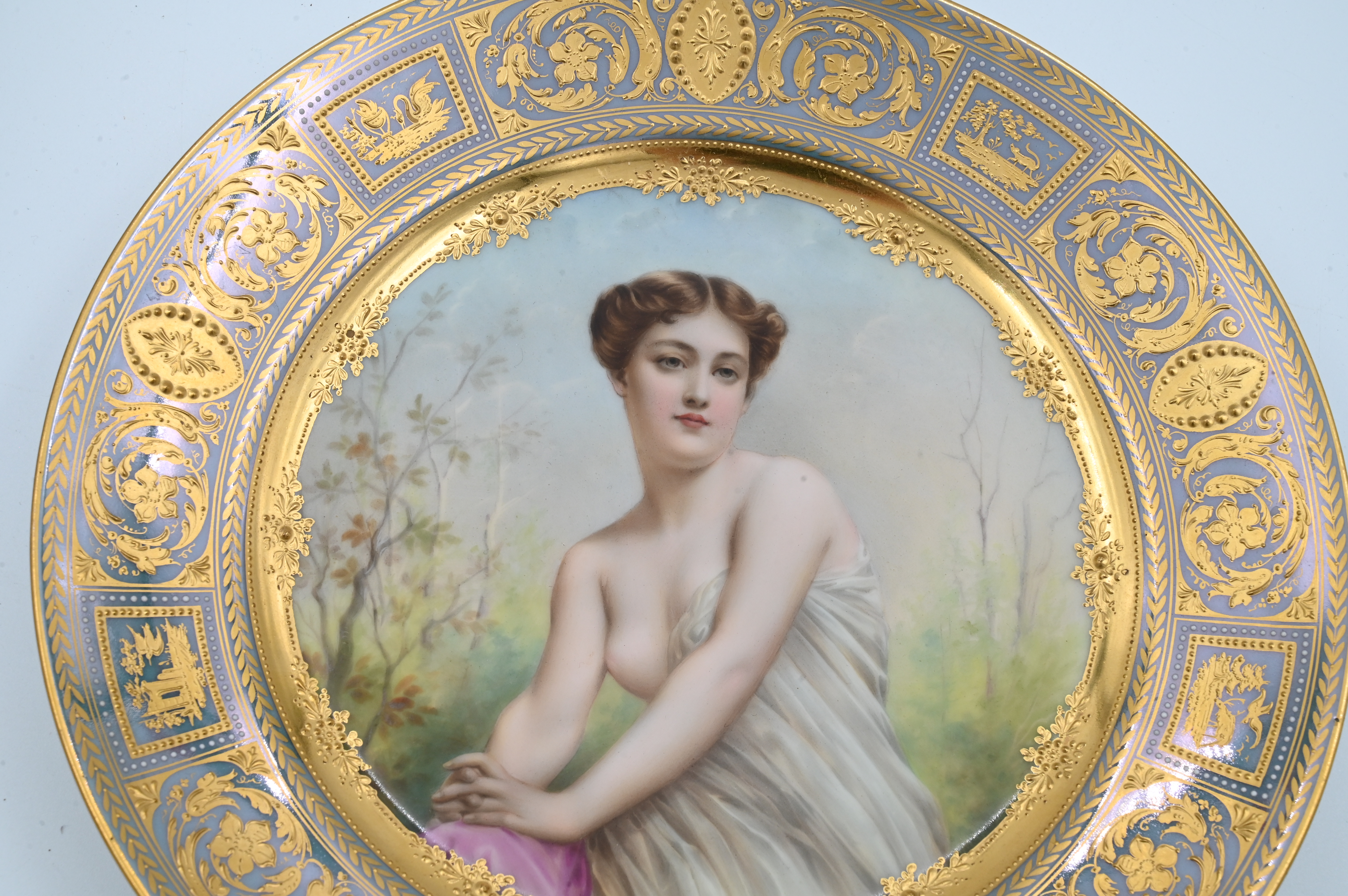 Featuring a semi-nude woman in a landscape having high relief gold border