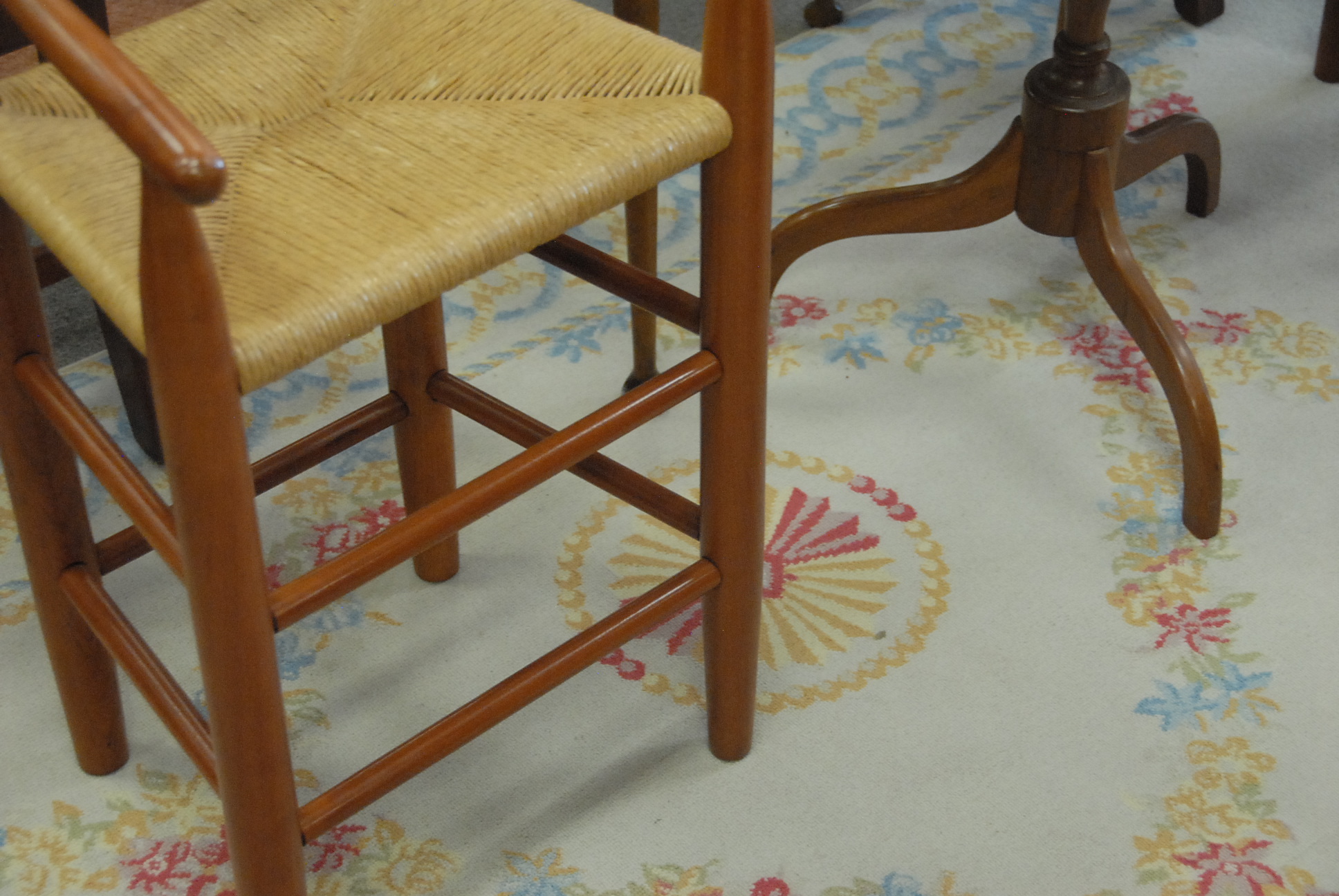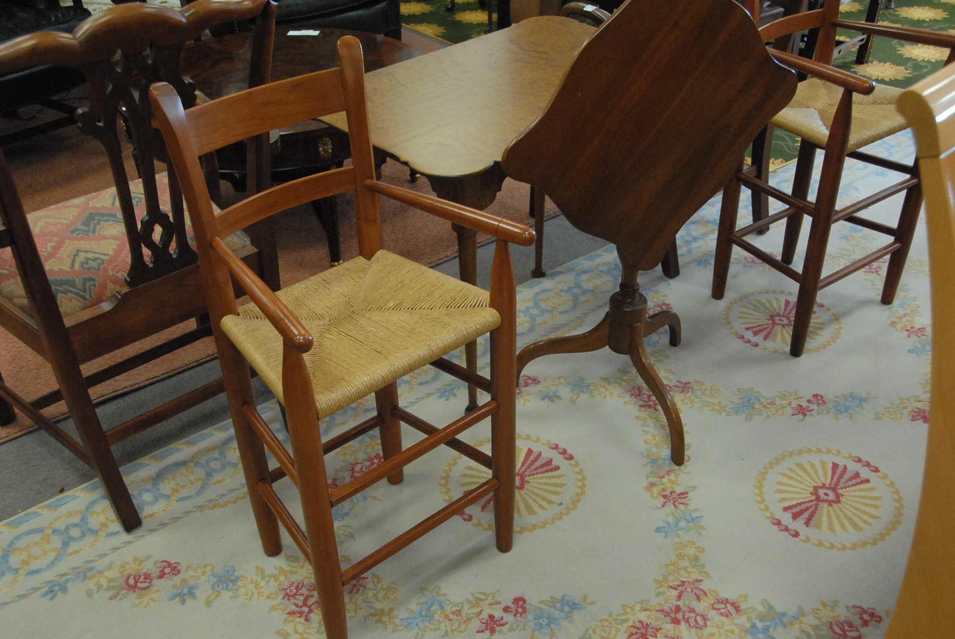 Lot 144: Three piece lot to include pair of cherry youth chairs attributed to Thomas Moser and a cherry tip table.