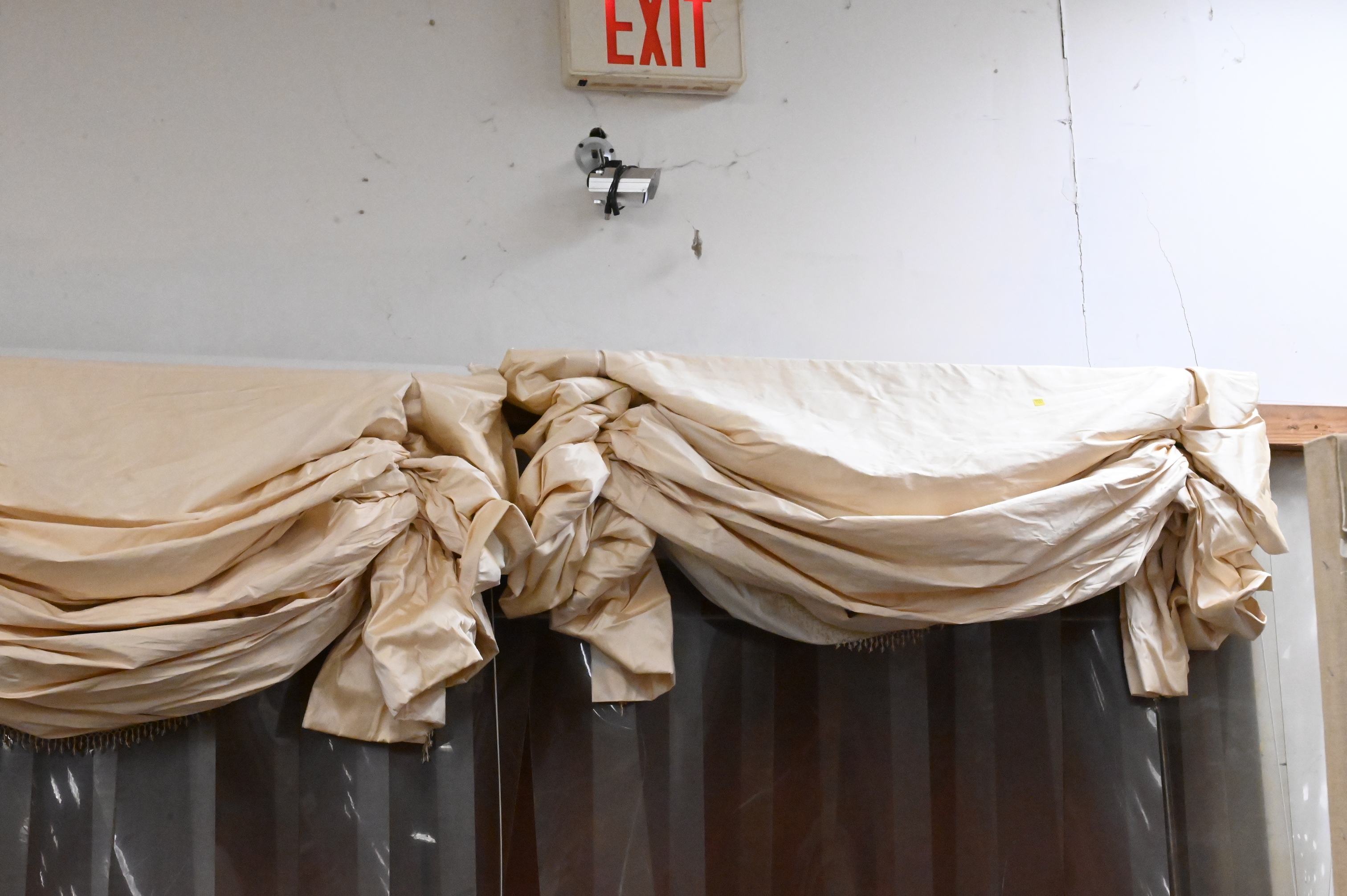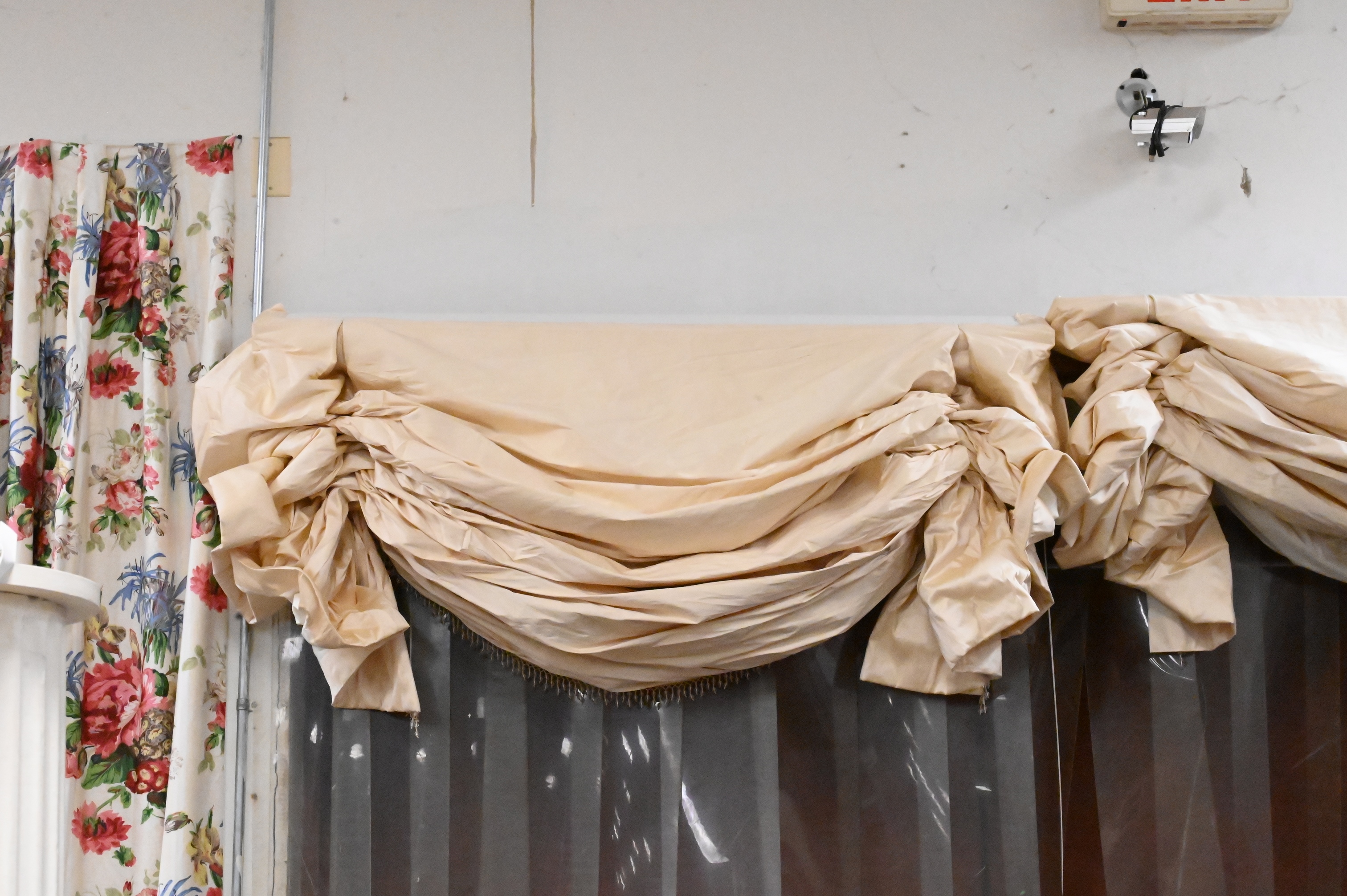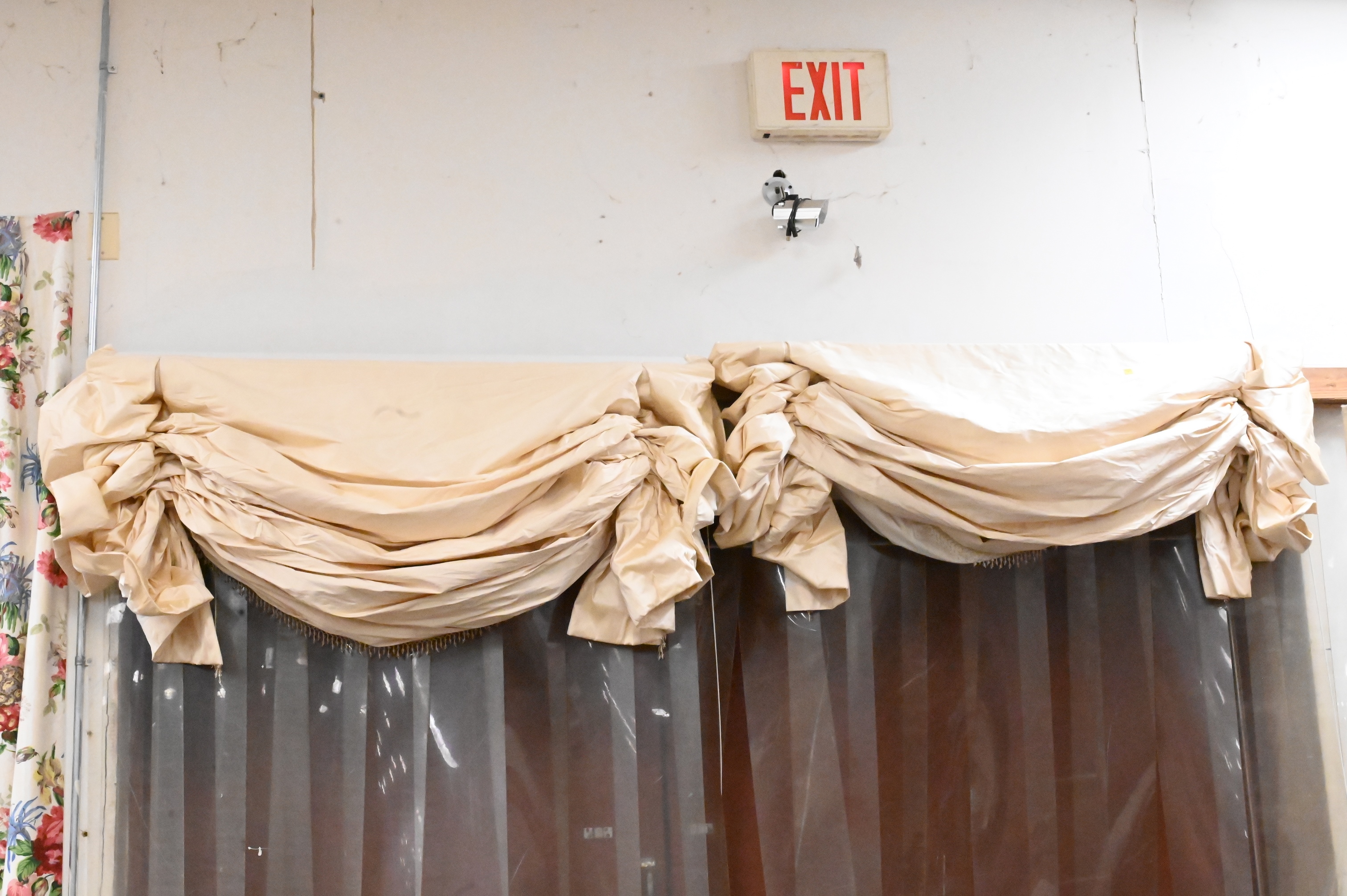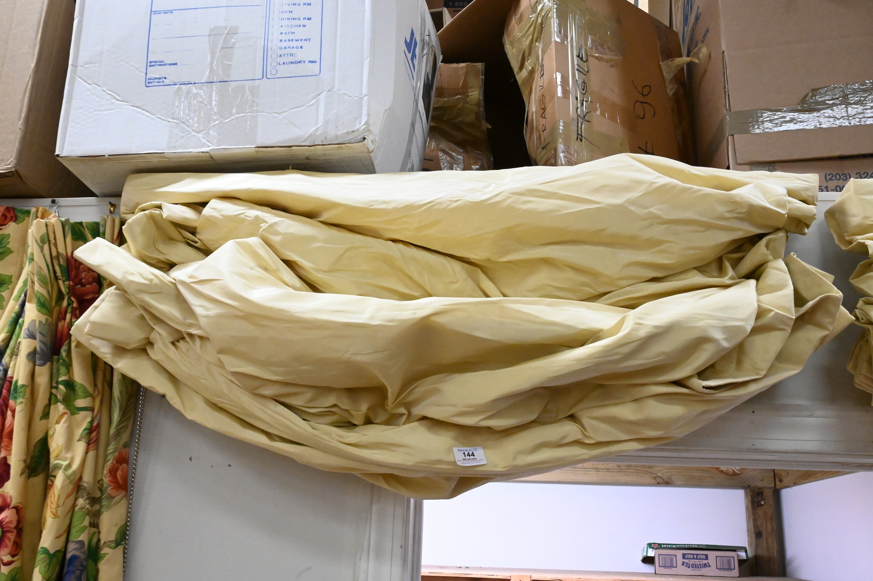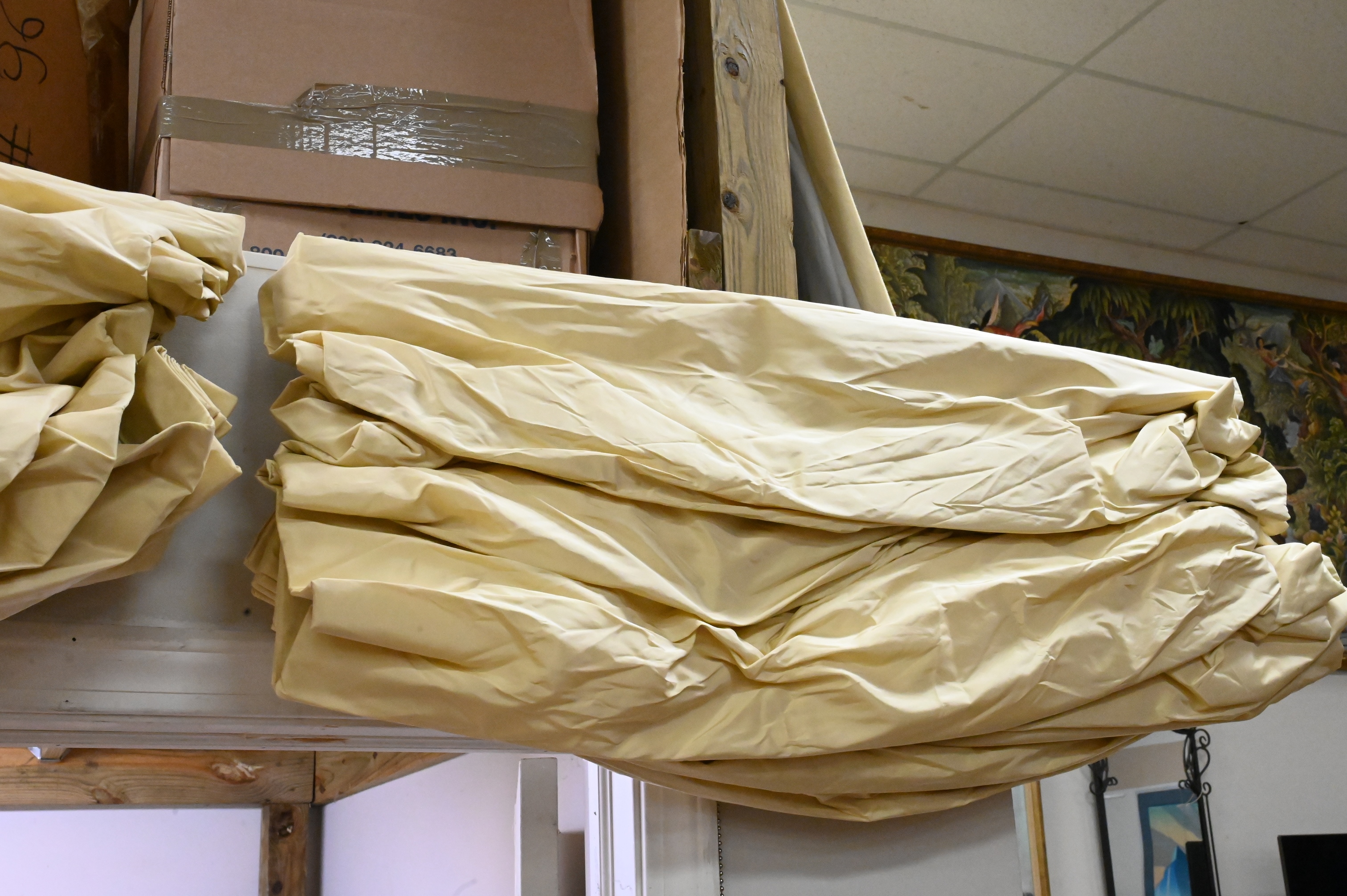 Three Sets of Windsor Curtains on Pulley, to include tan, grey and yellow, total approximately 8, 82″ x 66″.