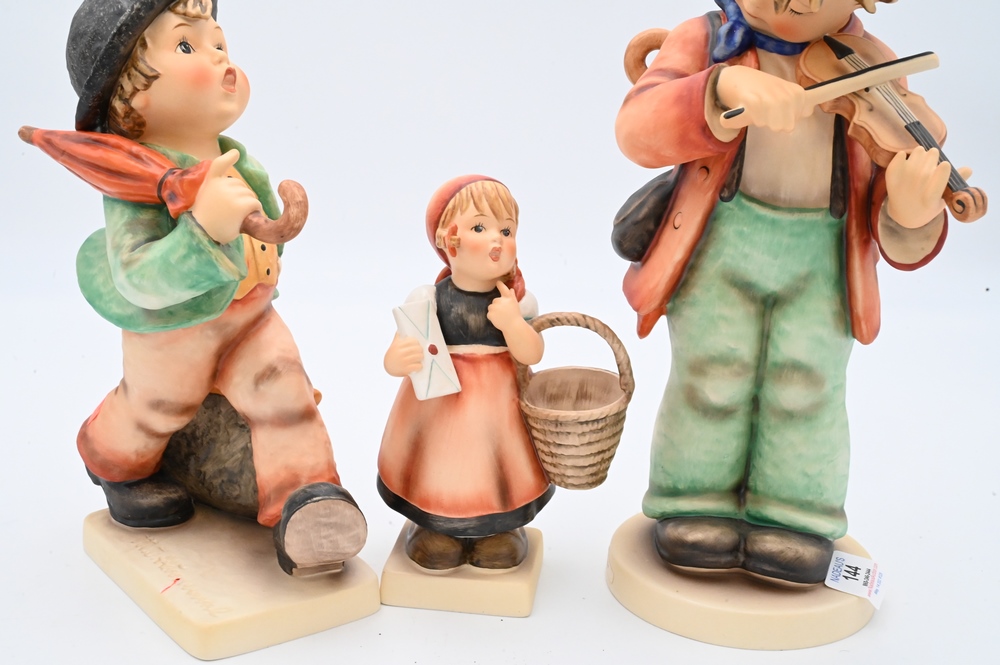 Lot 144: Two Large Goebel Hummels, to include Merry Wanderer, height 10 inches; and Violin Boy, height 13 1/2 inches. Provenance: Collections of Norma Reilly, New Jersey.