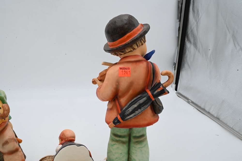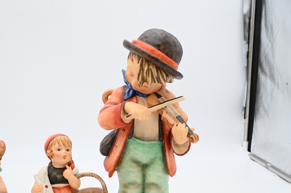 Two Large Goebel Hummels, to include Merry Wanderer, height 10 inches; and Violin Boy, height 13 1/2 inches. Provenance: Collections of Norma Reilly, New Jersey.