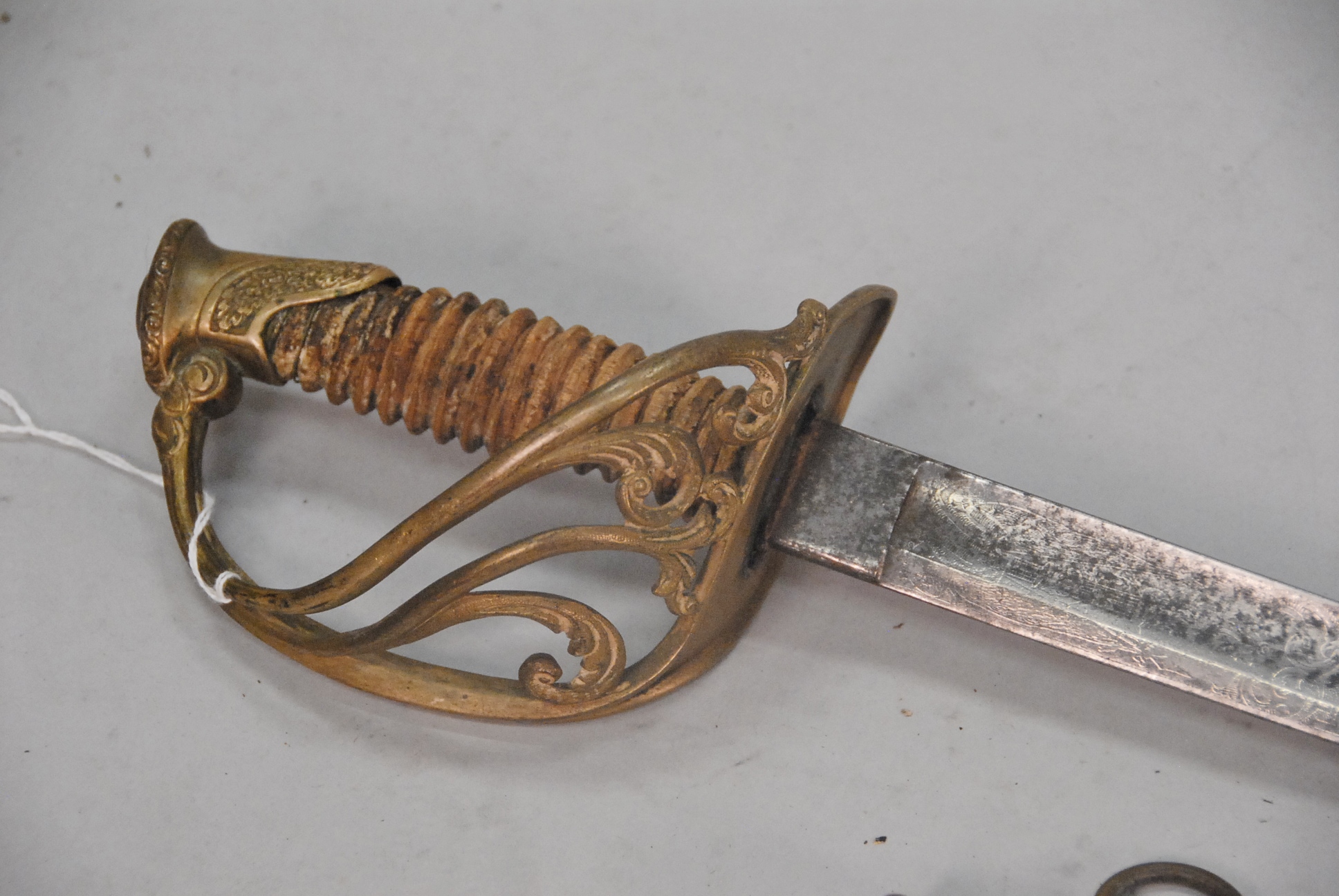Lot 144C: Clauberg officers sword, 32 blade marked W. Clauberg Solingen handle and scabbard as is, scabbard marked Ames MFG Co., Chicopee Mass.