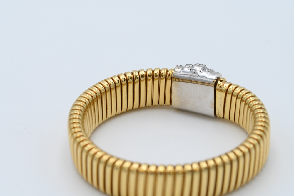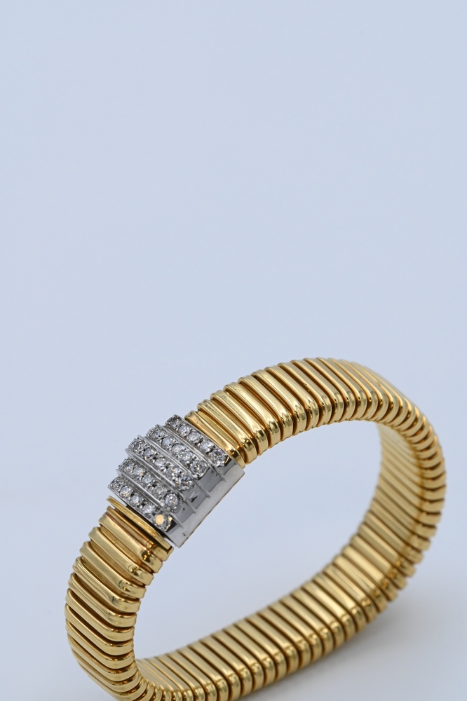18 Karat Yellow and White Gold Flexible Bracelet, mounted with 33 diamonds, length 6 5/8 inches, 47 grams.