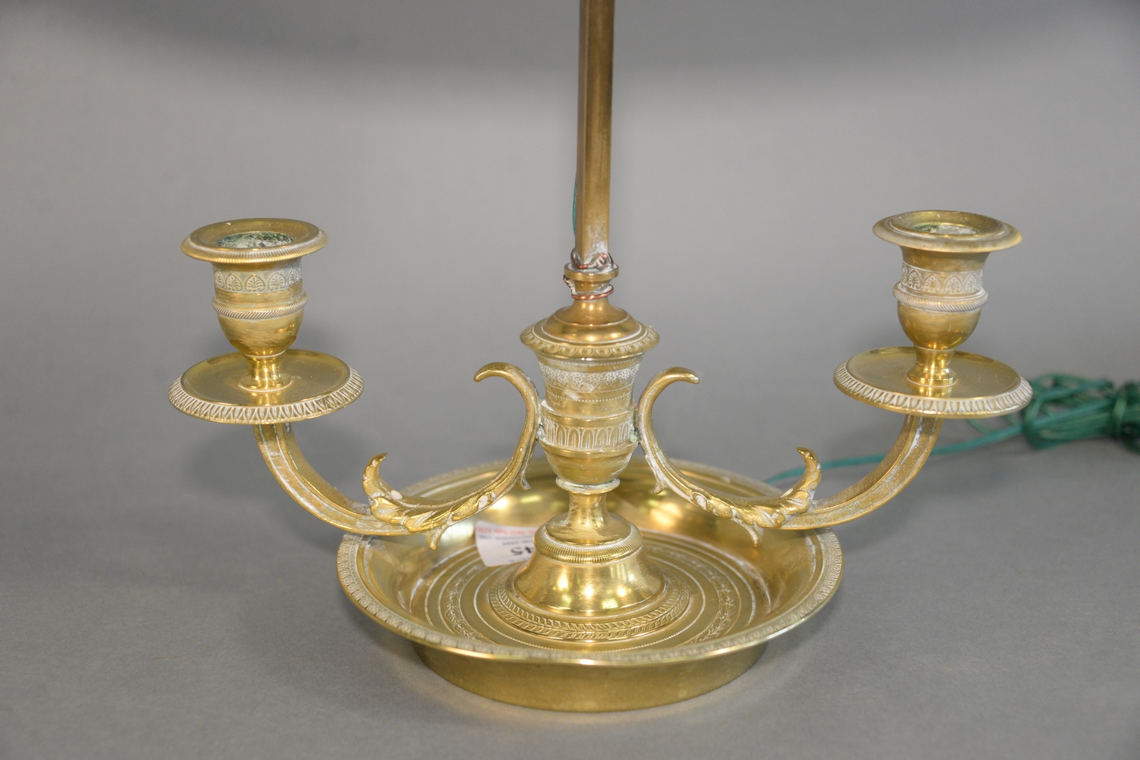 Lot 145: Brass Two-Light Boudoir Lamp with two candle holders, with adjustable shaft height 22 inches Provenance: The Gloria Schiff Estate, N…