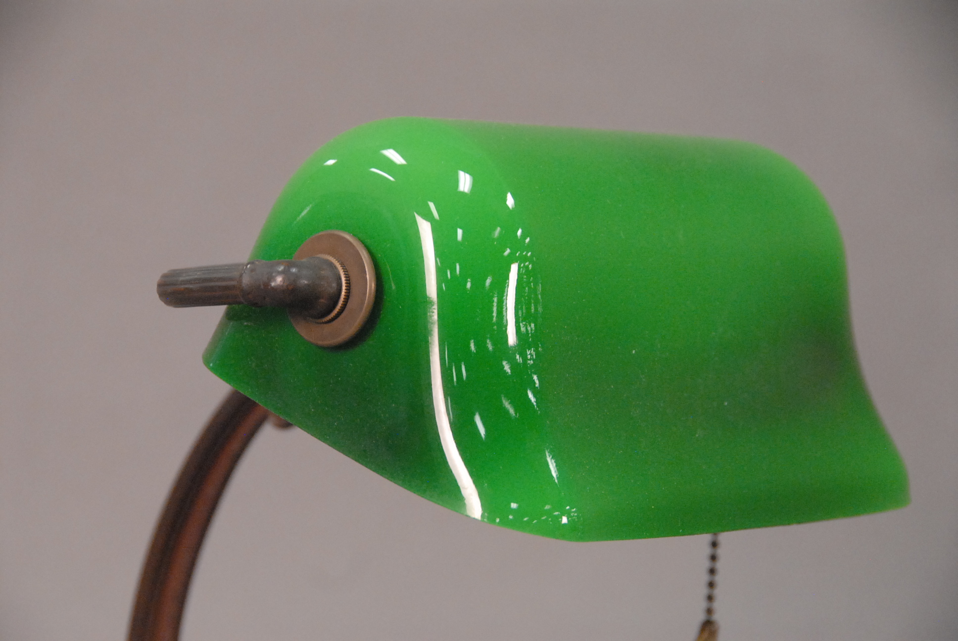 Desk lamp with green cased glass shade.