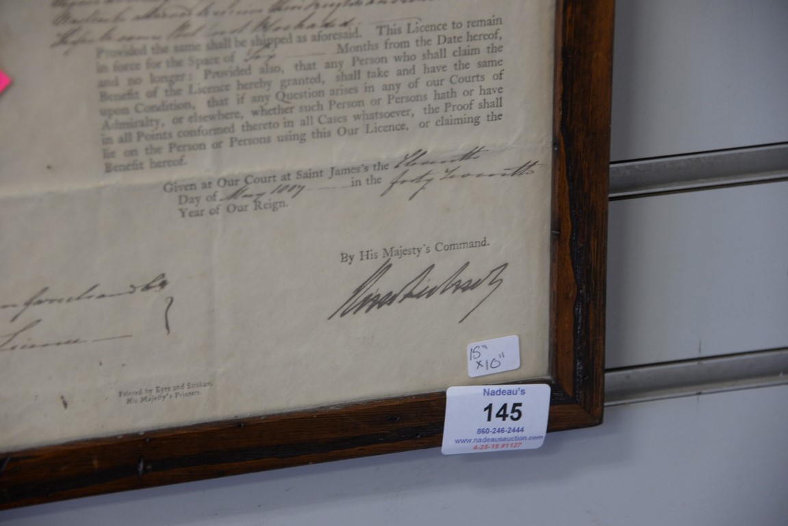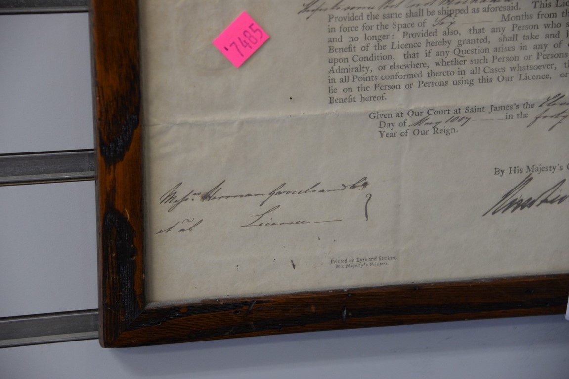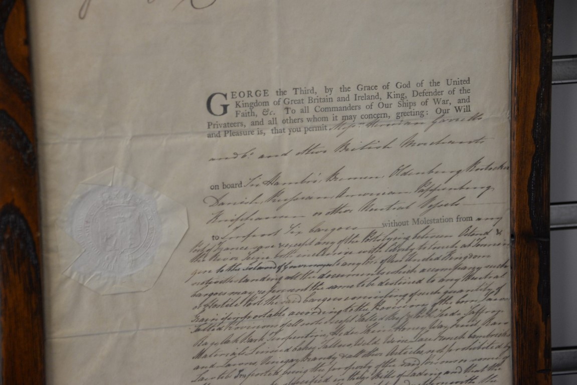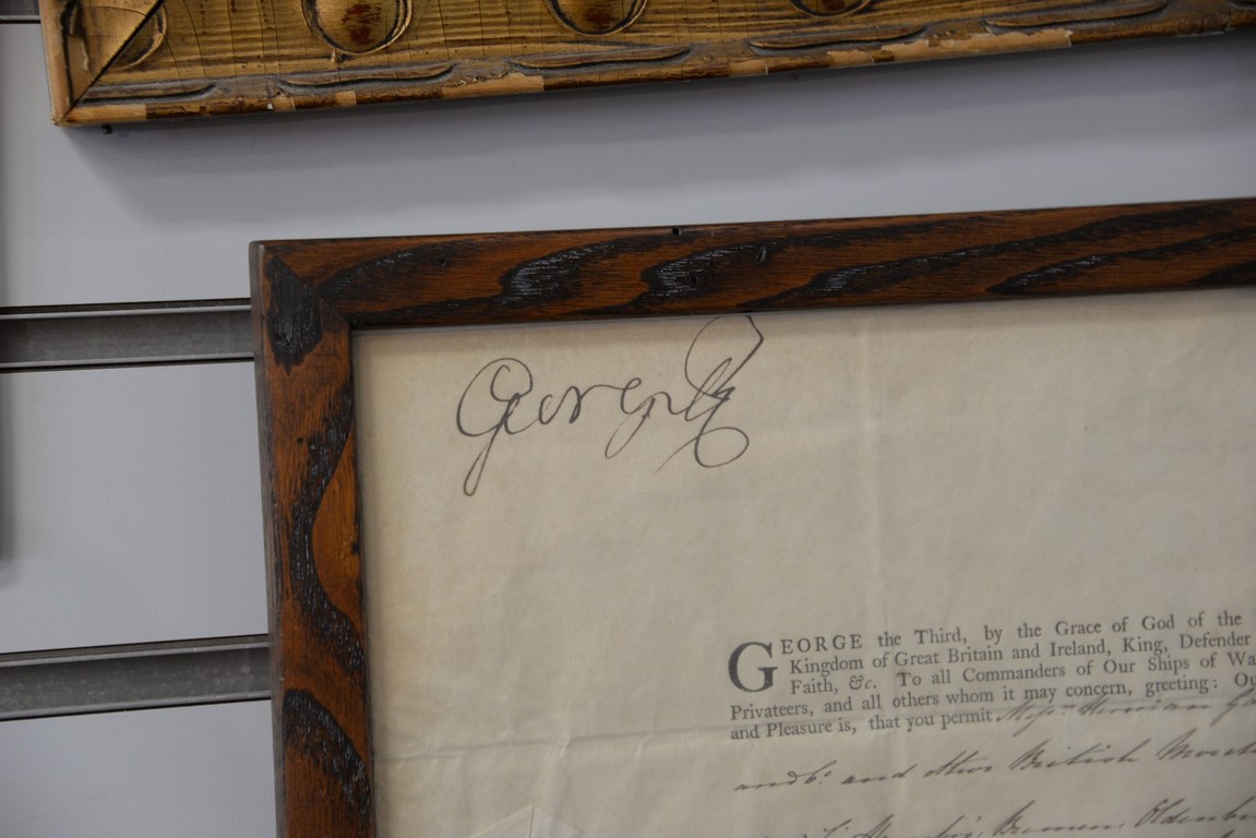 George III 1807 document for ships to be able to harbour in France. 15 x 10