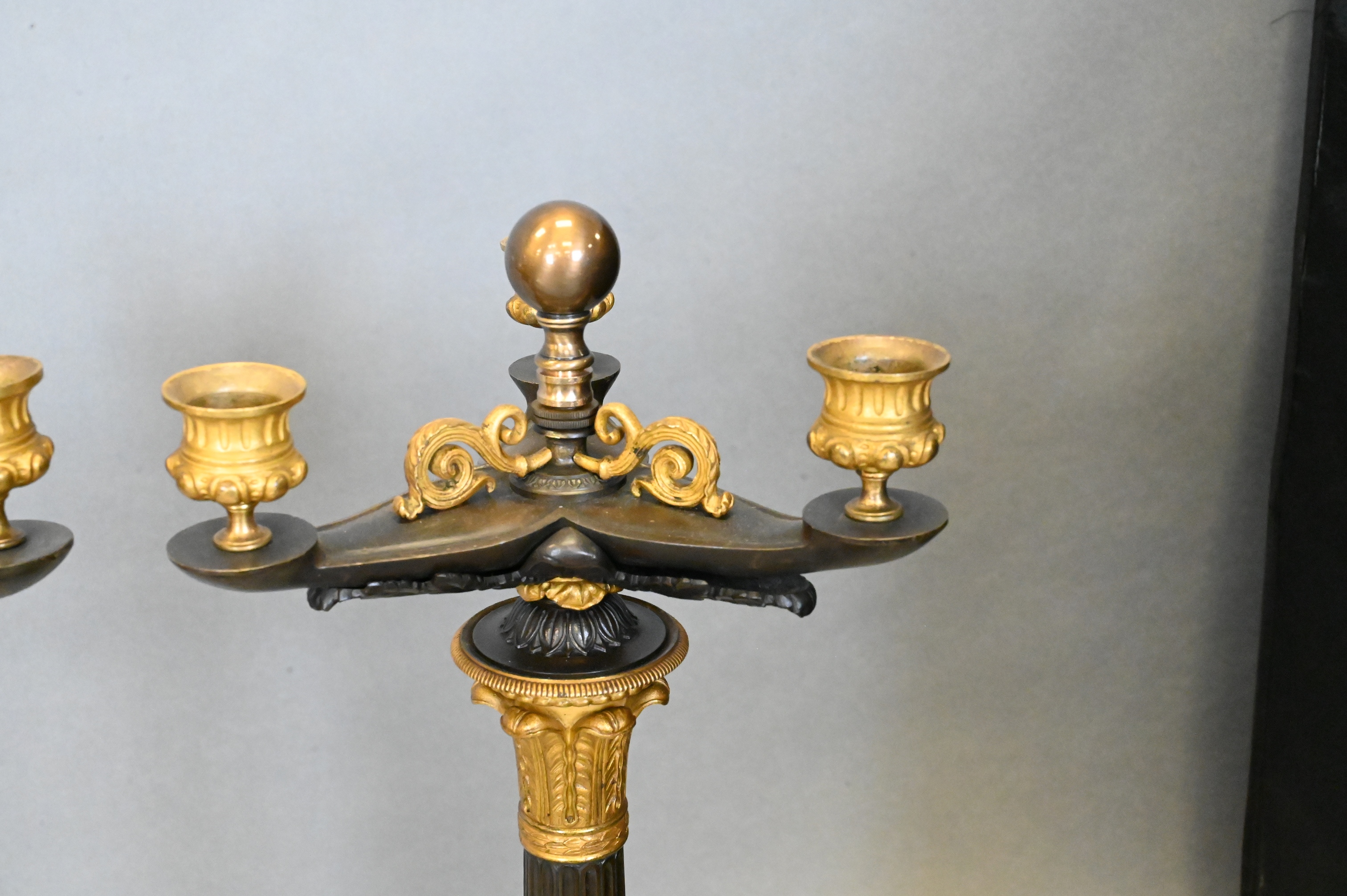 Pair of Bronze and Gilt Bronze Empire Candelabras