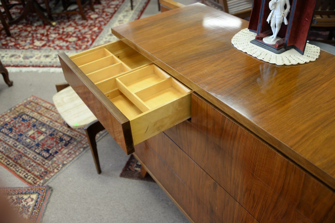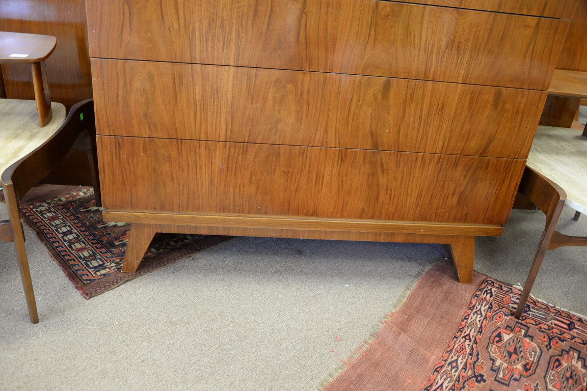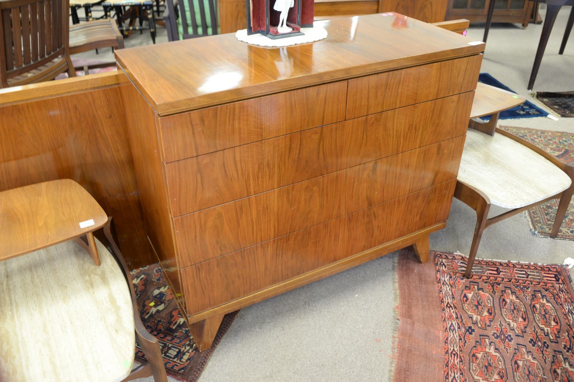 Lot 145: Swedish walnut two over three drawer chest and headboard by Bodafors attributed to Carl Malmsten, five drawers, dated 1952, ht. 37 i…