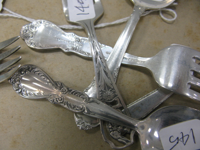 Ten piece lot of Sterling children’s forks, spoons and knives, 4.3 t.oz, plus one knife.