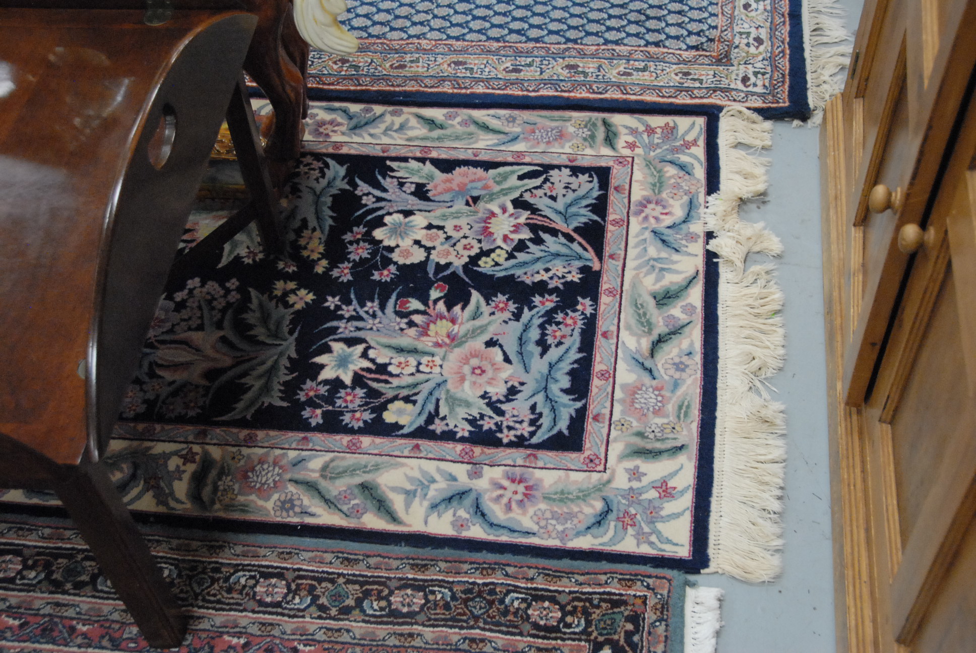 Three Oriental rugs, 2’7 x 6’1, 3′ x 5’2, and 2’11 x 5’2.