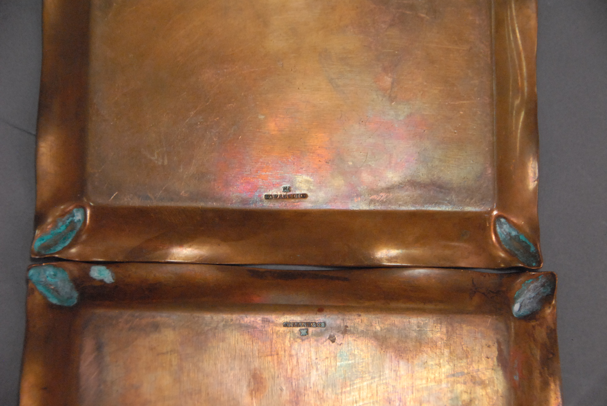 Tiffany & Co. two copper/bronze trays in form of printing block inscribed.