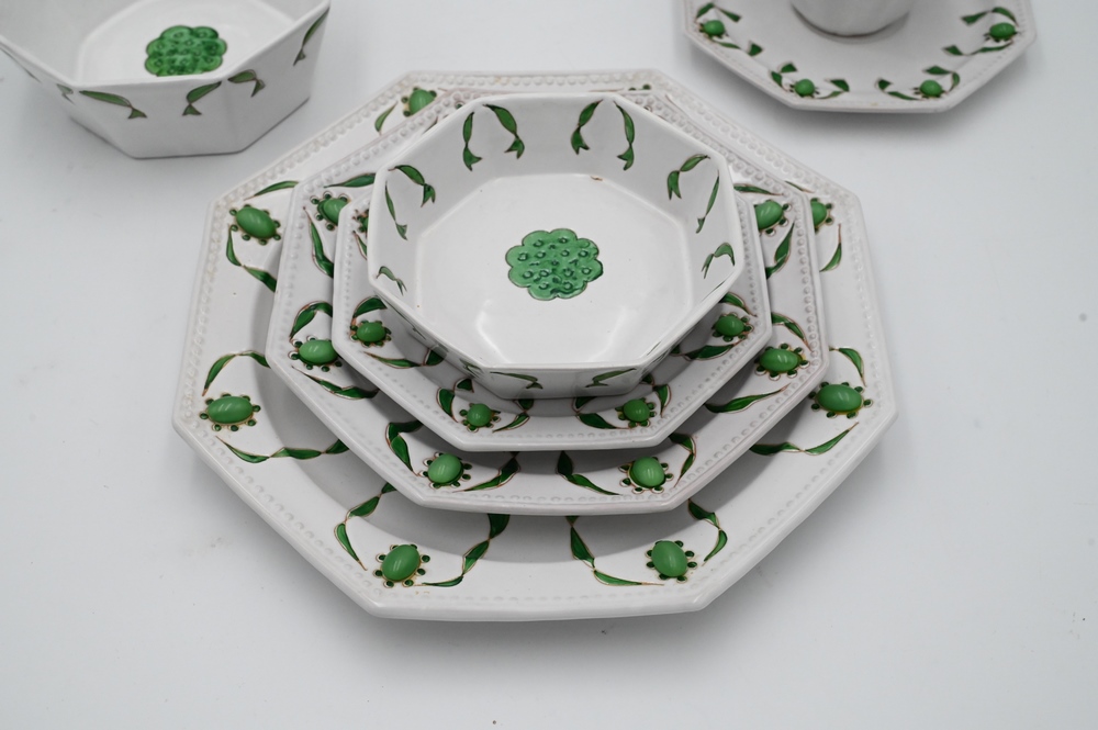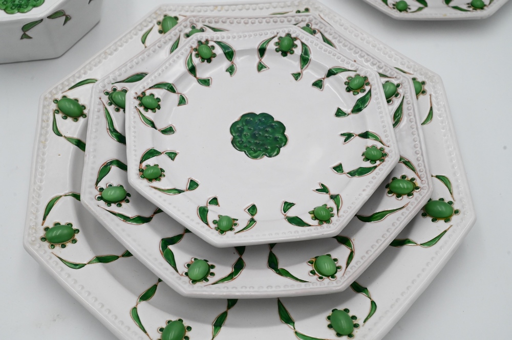 94 Piece Italian Dinnerware Set, to include 8 dinner plates, 14 salad plates, 13 tea cups, 18 tea saucers, 16 bowls, 13 dessert plates, and 12 dessert bowl.