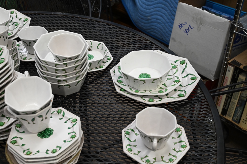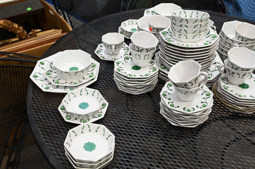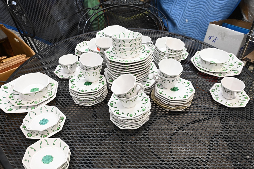 Lot 146: 94 Piece Italian Dinnerware Set, to include 8 dinner plates, 14 salad plates, 13 tea cups, 18 tea saucers, 16 bowls, 13 dessert plates, and 12 dessert bowl.
