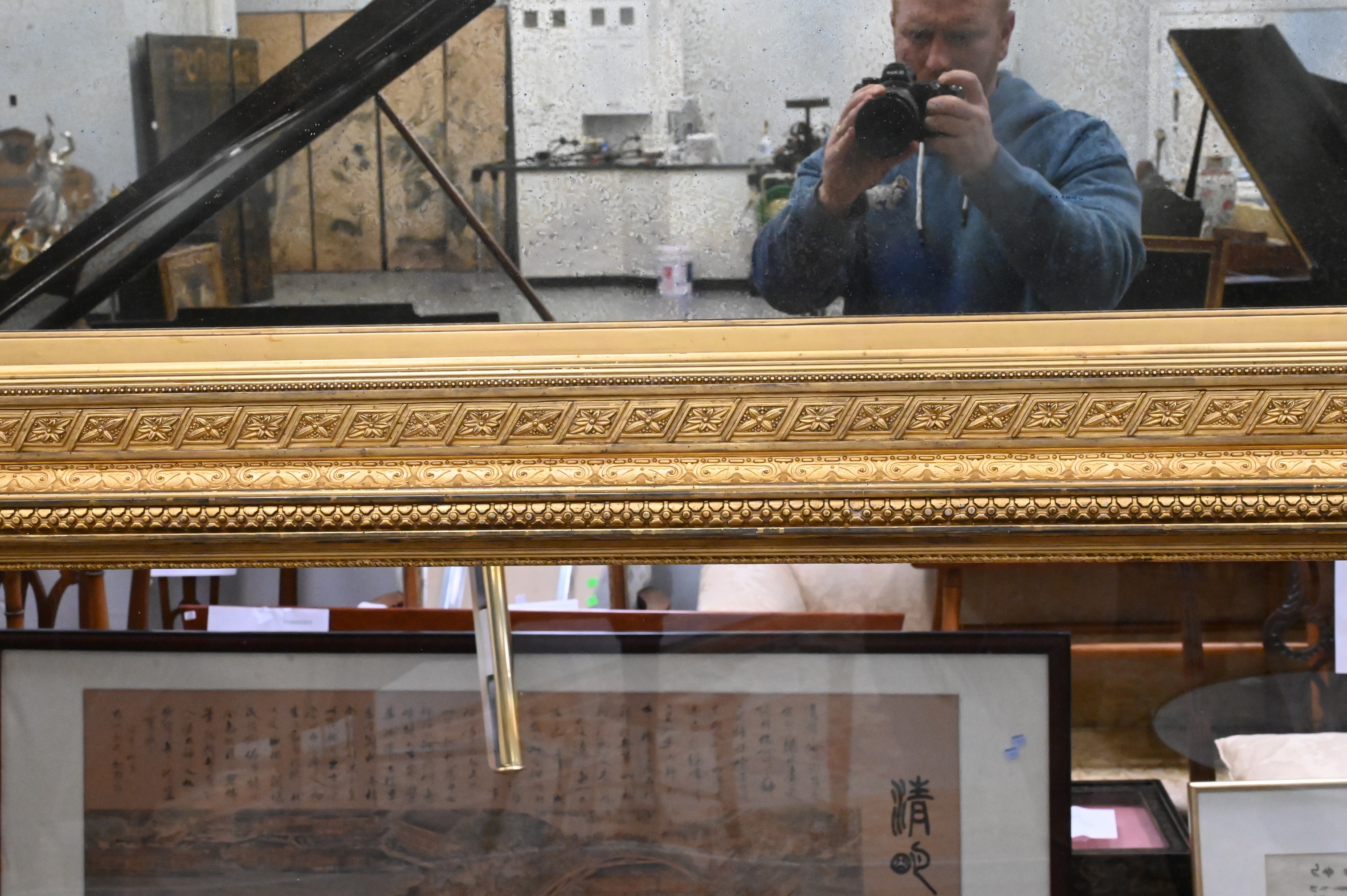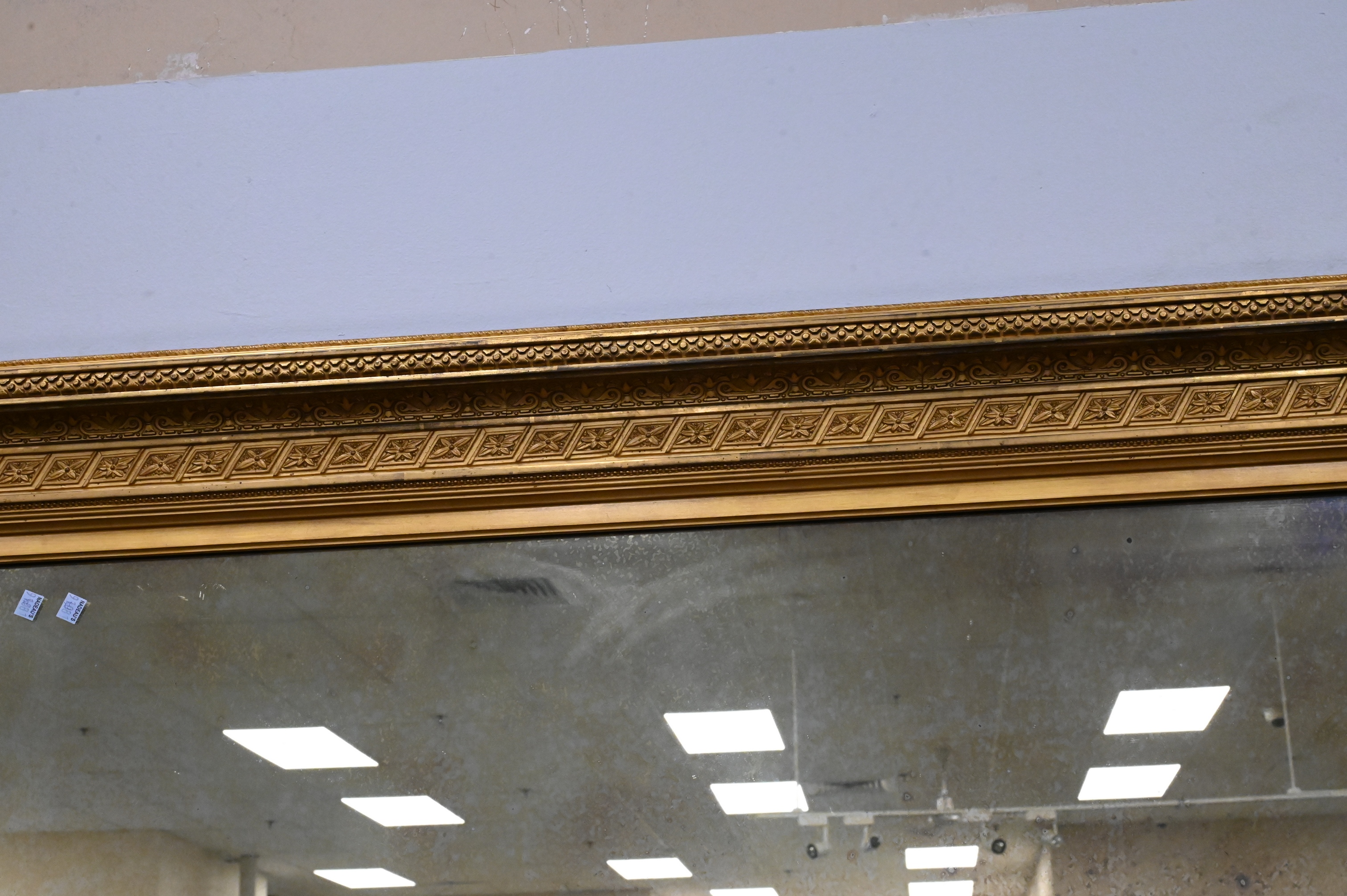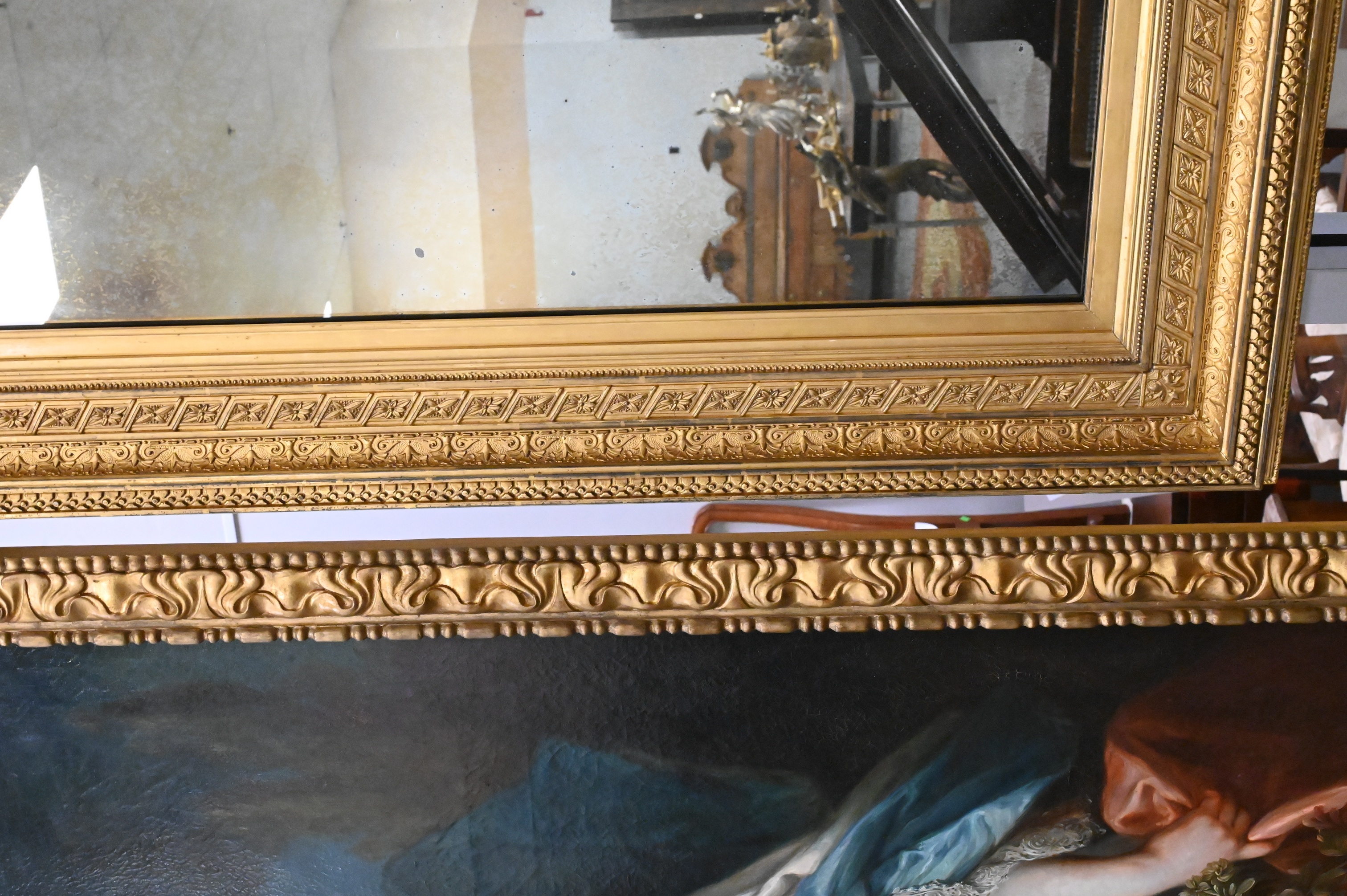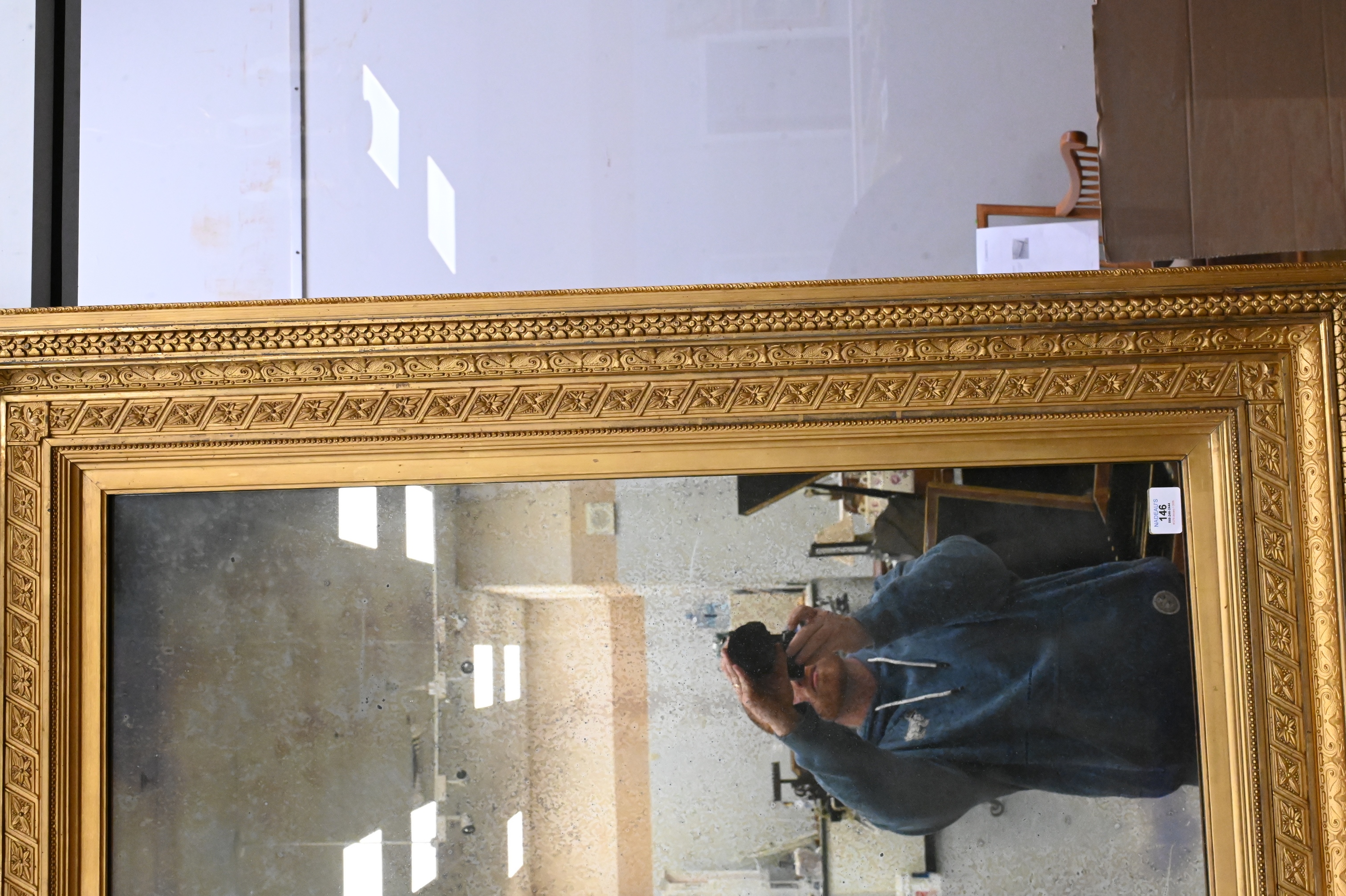 Lot 146: American Gilded Panel Mirror with Continuous Ornamental Relief