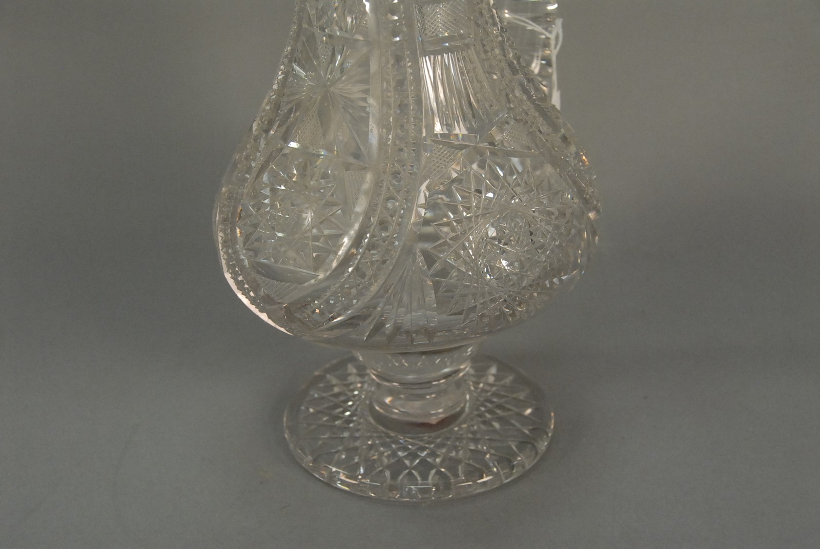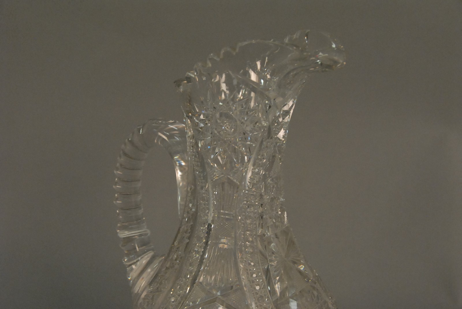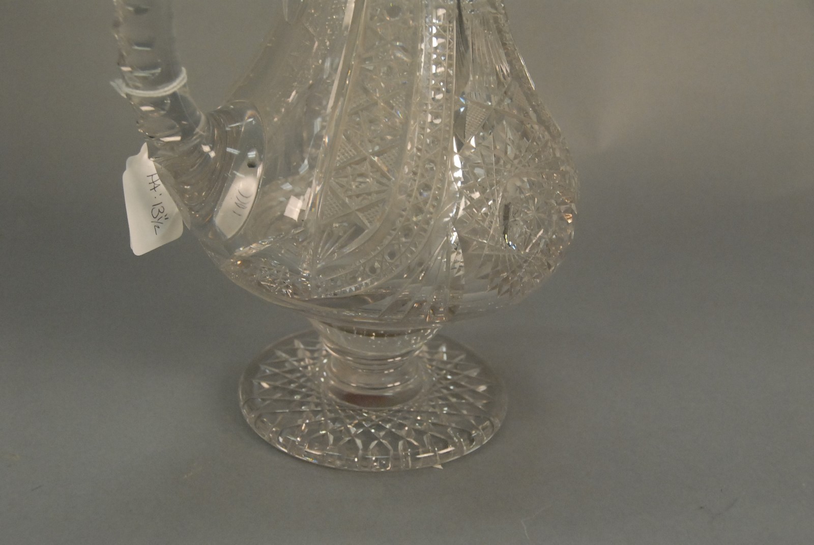 Cut glass pitcher on stemmed footed base. ht. 13 1/2 in.