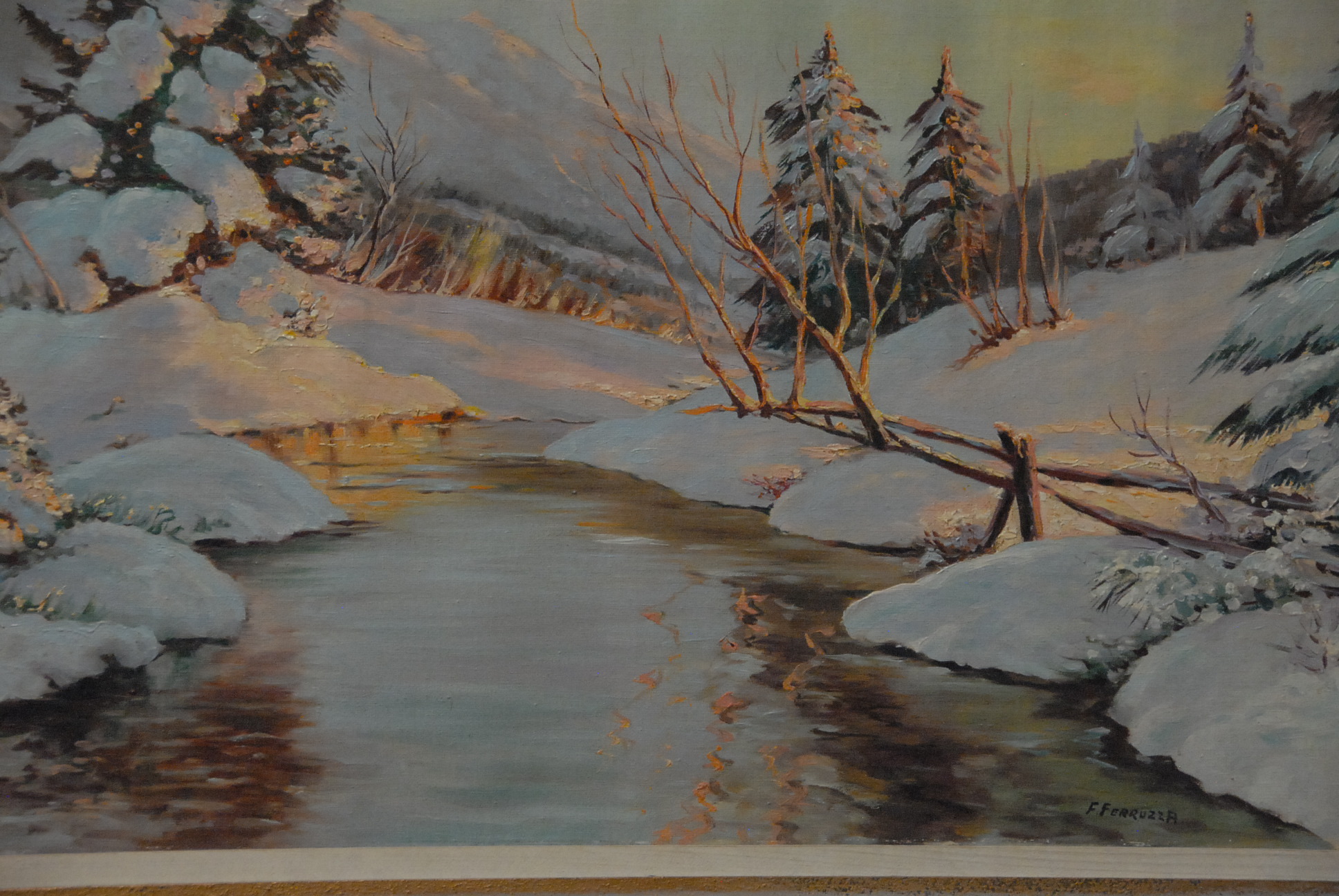 Lot 146: Frank Ferruzza 1912-1984 Winter Stream oil on canvas signed lower right F. Ferruzza, 36 x 30.