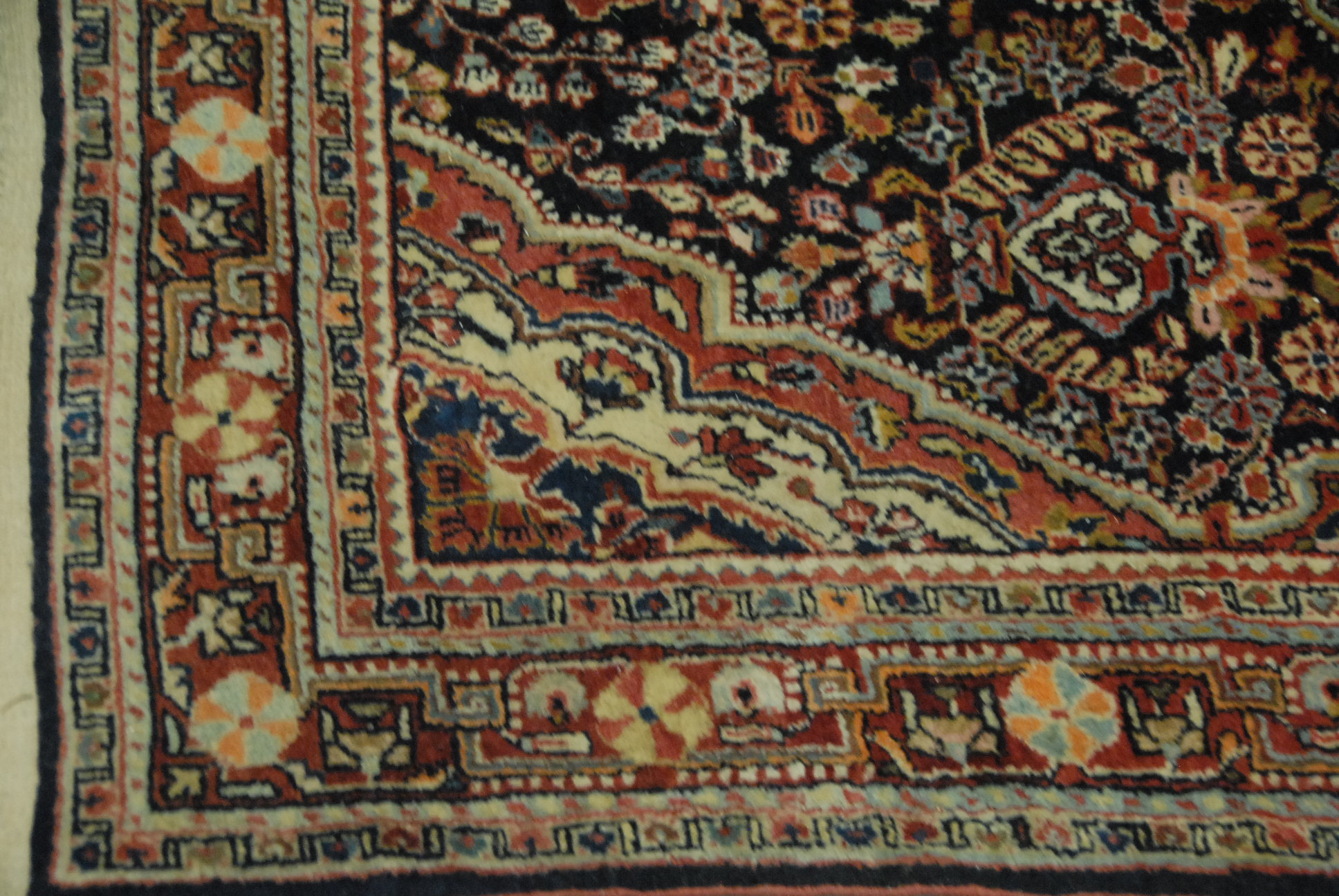 Oriental throw rug. 3’5 x 5′ Provenance: Property from The Estate of W. Scott Van Alstyne of Essex, Connecticut.