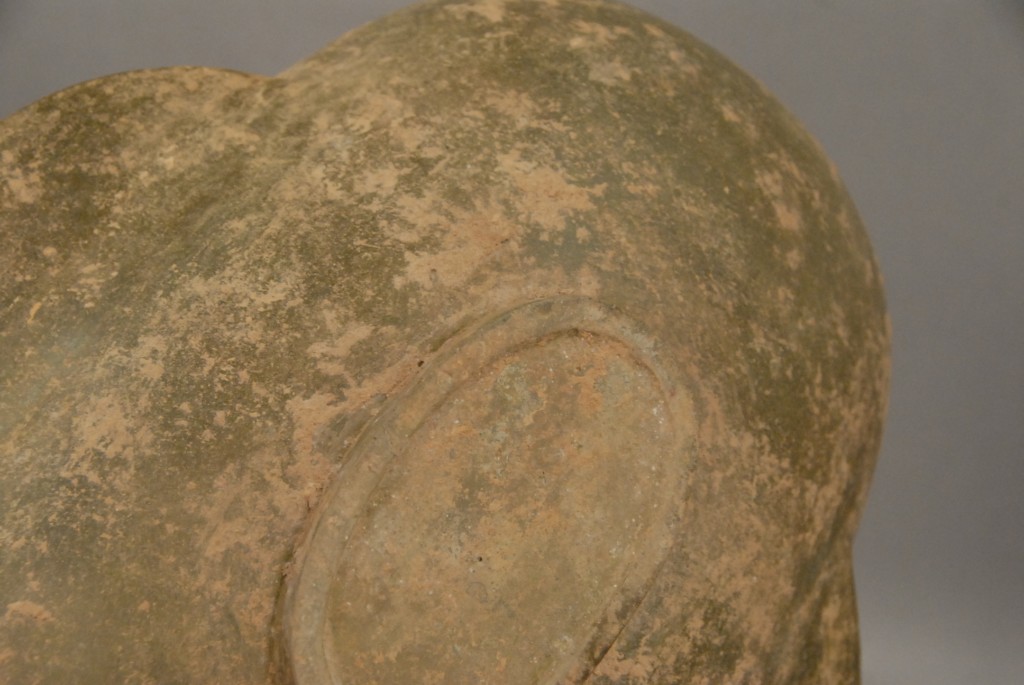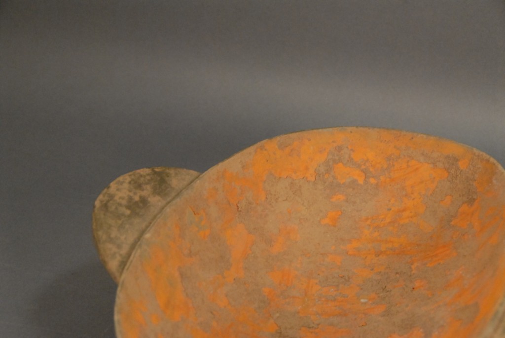 Pair of painted pottery ear cups wine cups.ht. 4in. lg.. 12 1/4in. wd. 10 3/4in.
