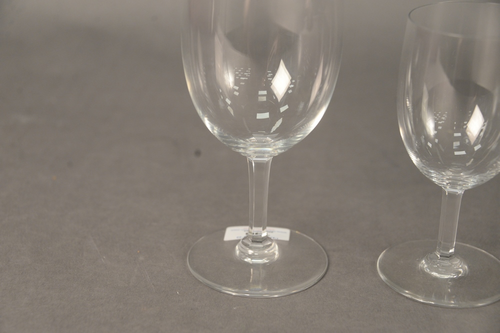 Lot 146: Set of Sixteen Baccarat Crystal Stems, to include a set of eight red wines, along with a set of eight white wines, height 5 3/4 inch…