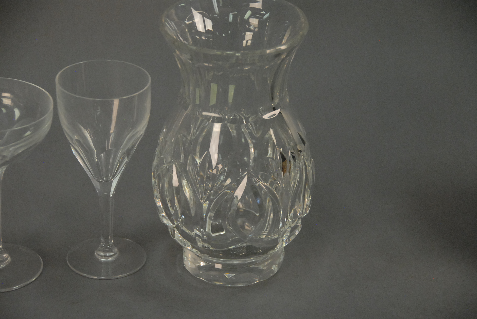 Lot 146: Val St. Lambert group to include three sizes of stems and two vases.stems: ht. 7 1/2 in., 6 1/2 in., & 6 in. vases: ht. 8 1/2 in. &…