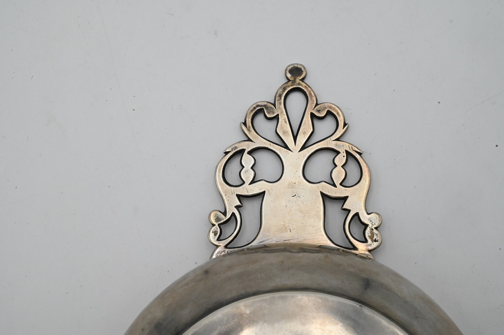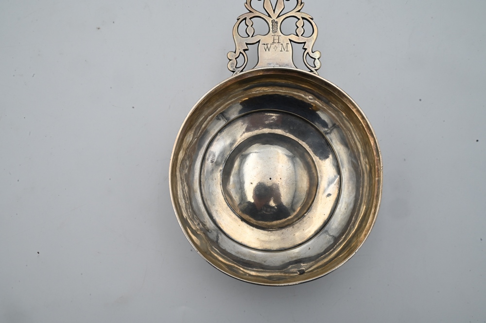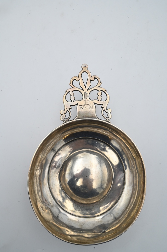 Benjamin Burt (Boston, 1729 – 1803), silver porringer having open work handle, inscribed with initials WMH, height 2 inches, diameter 5 1/2 inches, 7.6.t.oz.