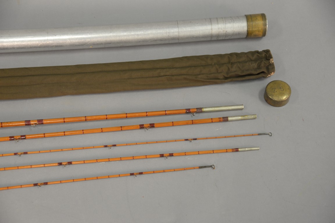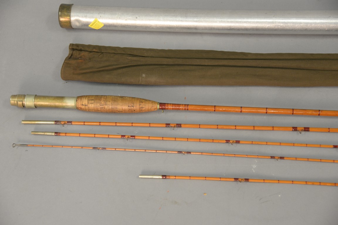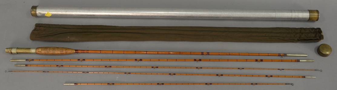 Lot 146A: Leonard three piece bamboo flyrod for trout having three tips including one shorter tip marked The H.L. Leonard Rod Leonard & Mills…