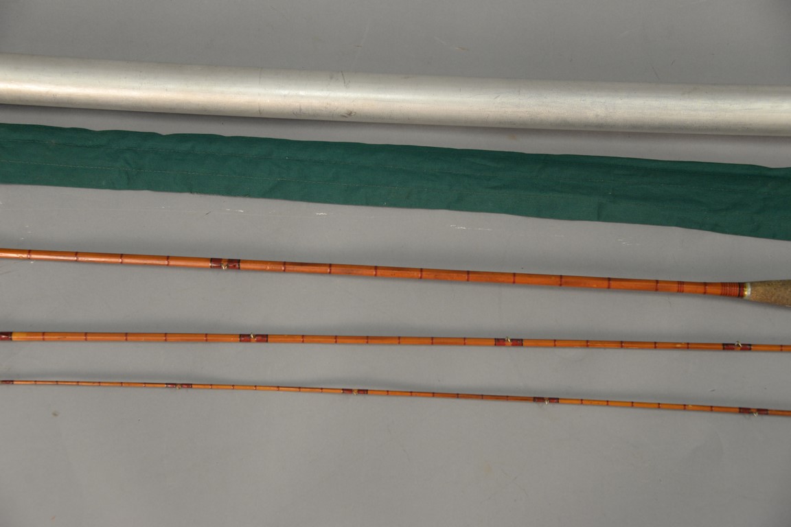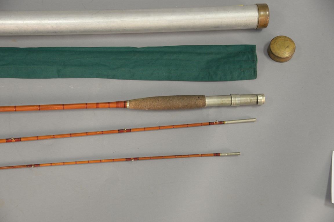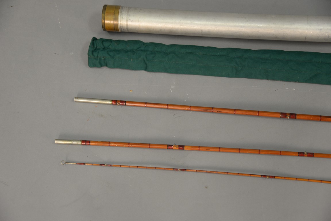 Lot 146C: Victory bamboo fly rod, three part, one tip is 36 3/4, marked Victory SD G New York, with metal case. ht. 114.75in.