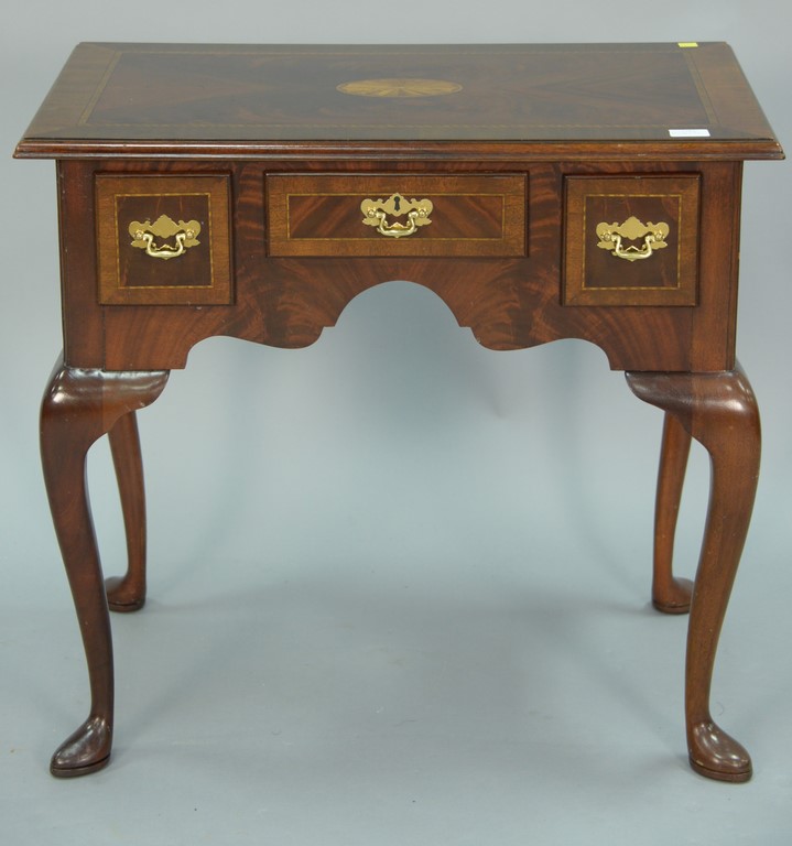 Council mahogany inlaid Queen Anne style lowboy. ht. 27in., top: 18 x 30