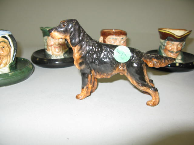 Eight piece lot including seven Royal Doultons, one is a dog.
