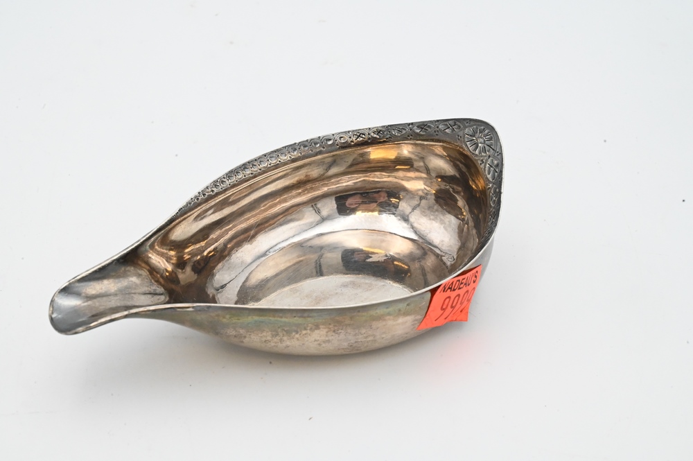 English Silver Feeder/Pourer, marks worn, probably Hester Bateman, length 5 inches.