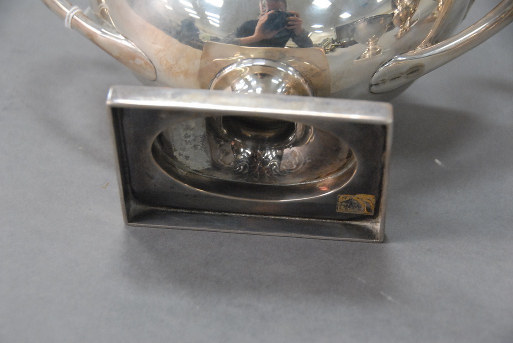 Lot 147: Five piece sterling silver tea and coffee set with chased bodies and square bases. 93.6 t oz.