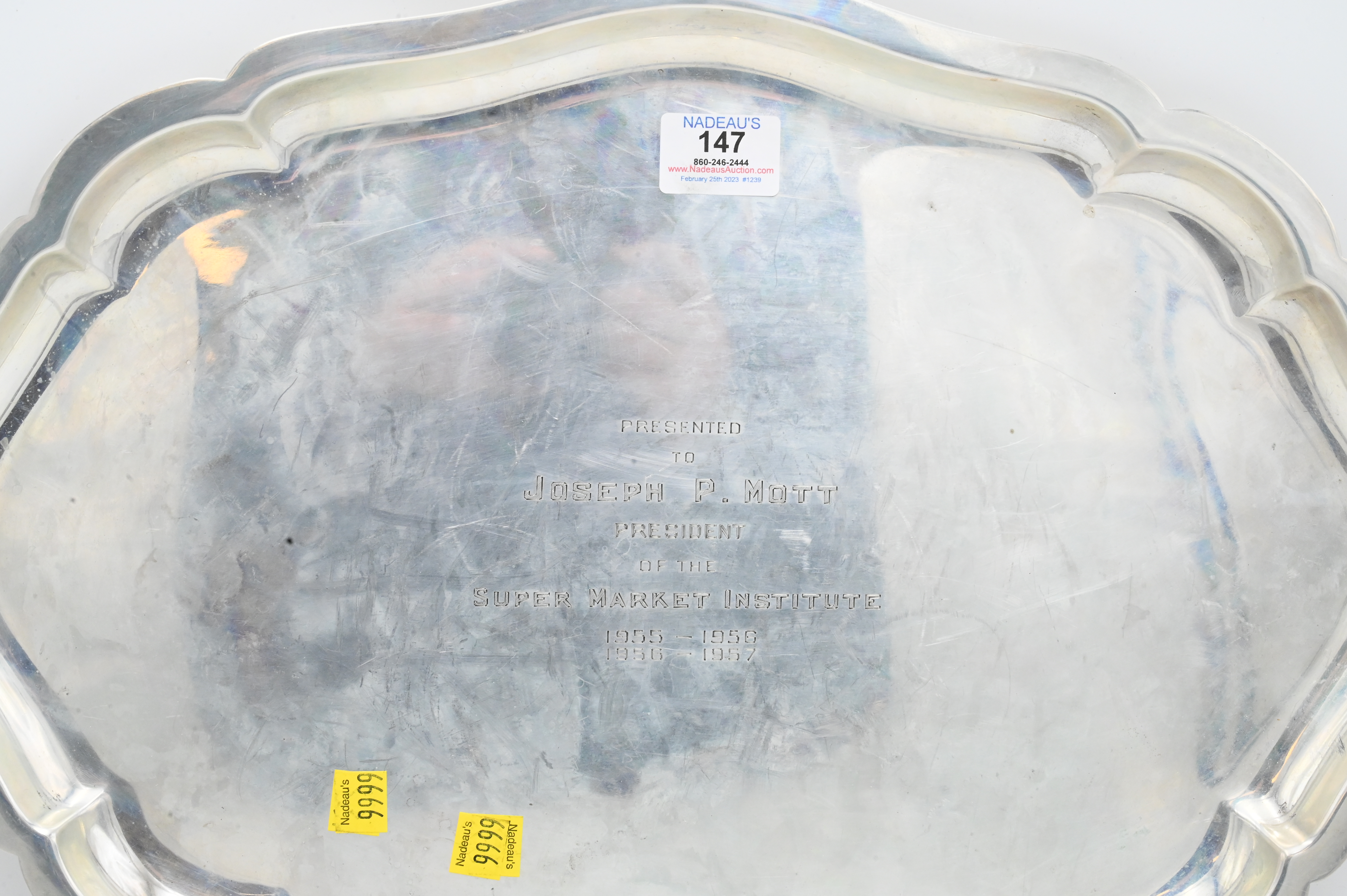 International Silver Sterling Tray, monogrammed, 14 1/2″ x 20 1/2″, 56 t.oz.