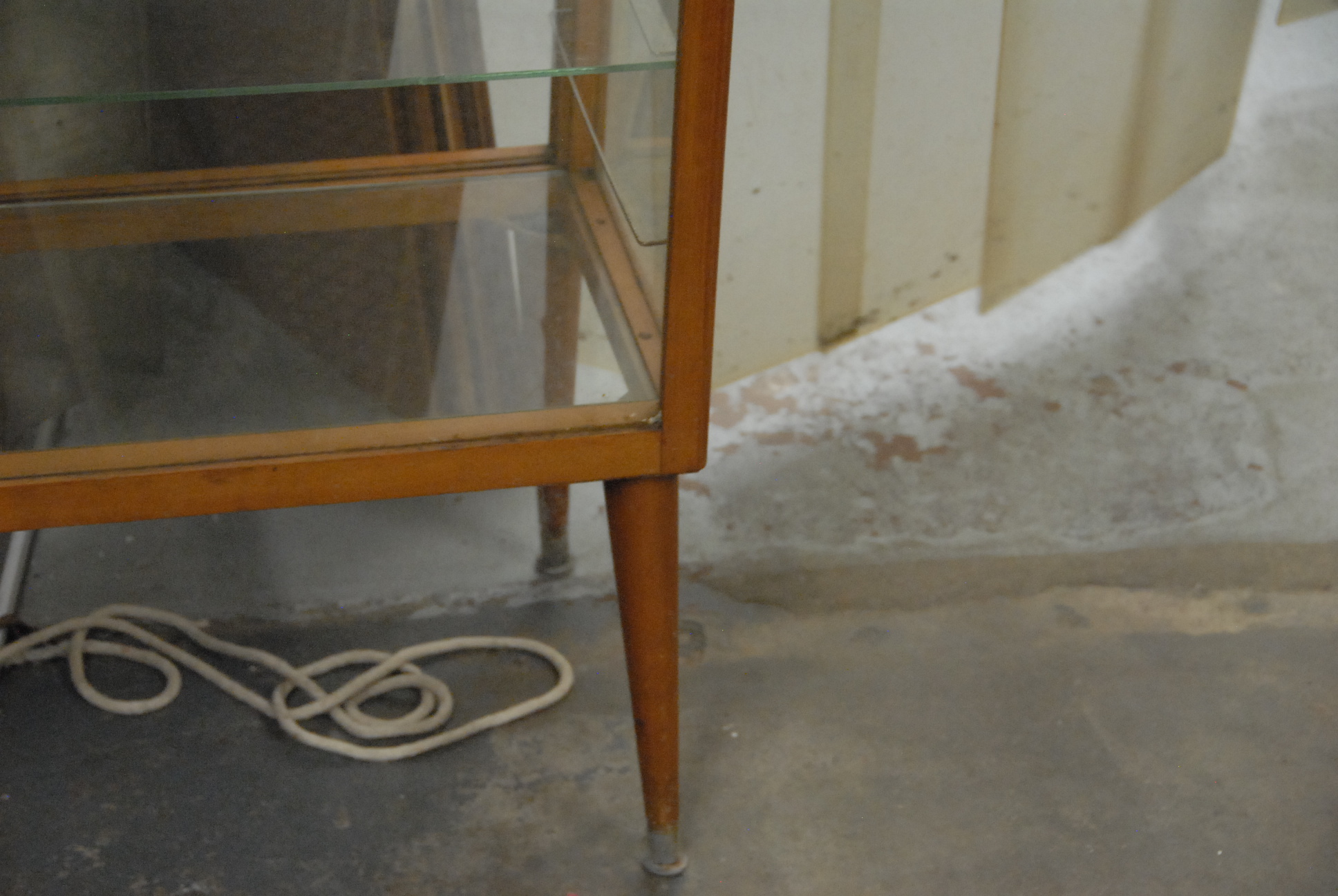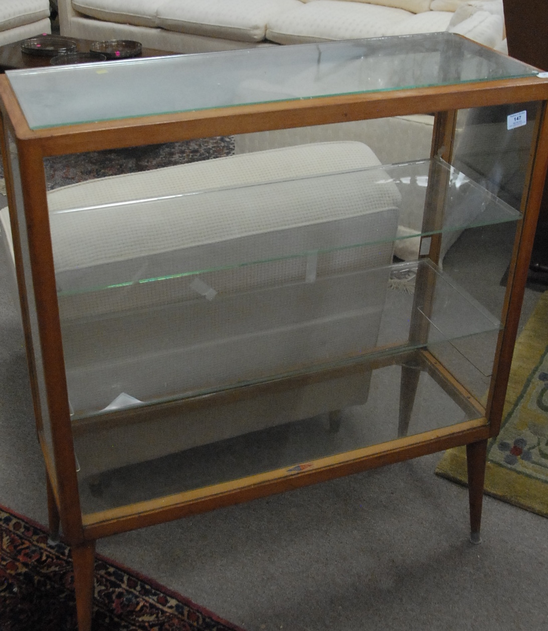 Mid-Century maple and glass showcase, ht. 42 in. lg. 36 in. dp. 14 in.