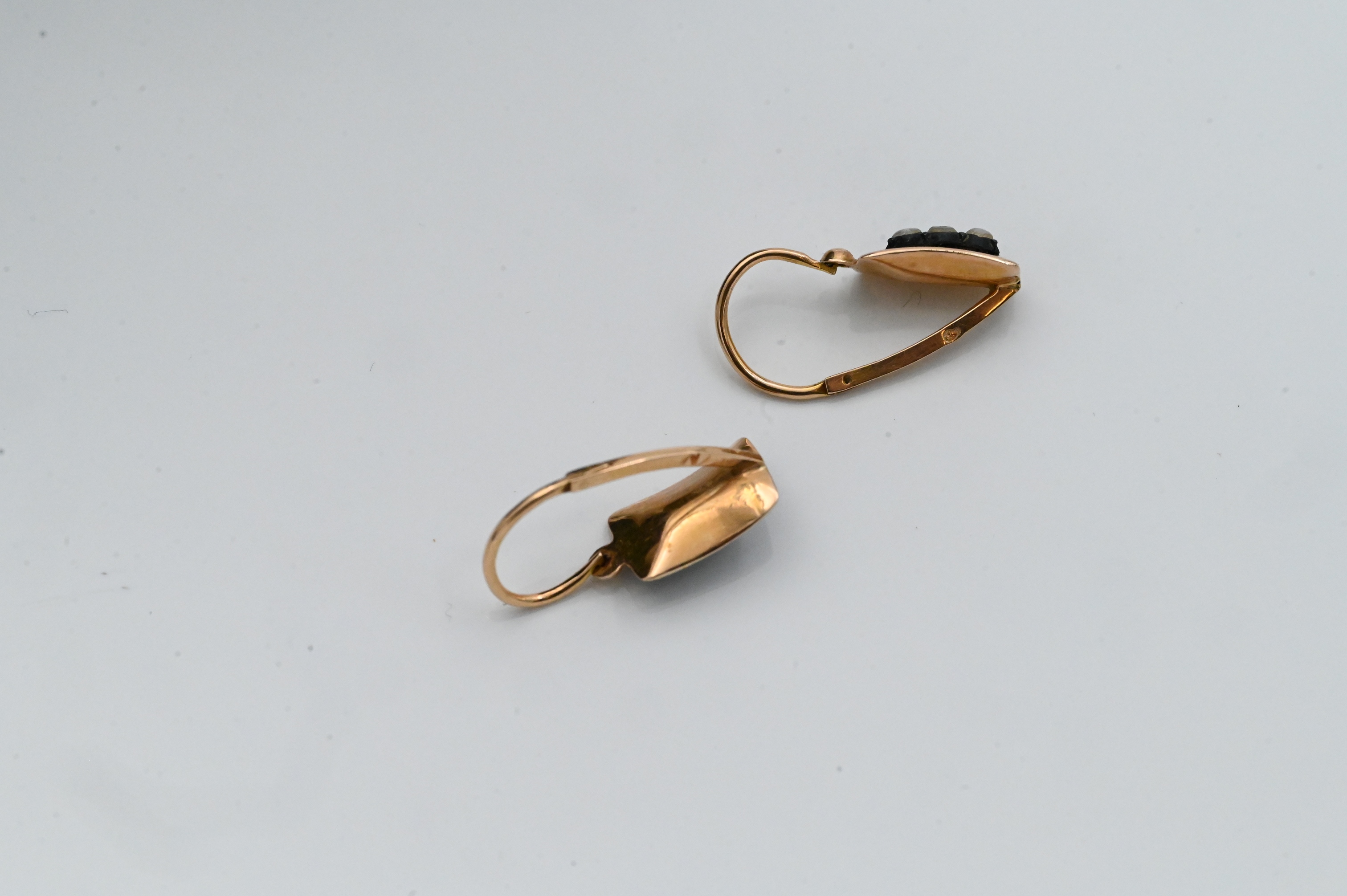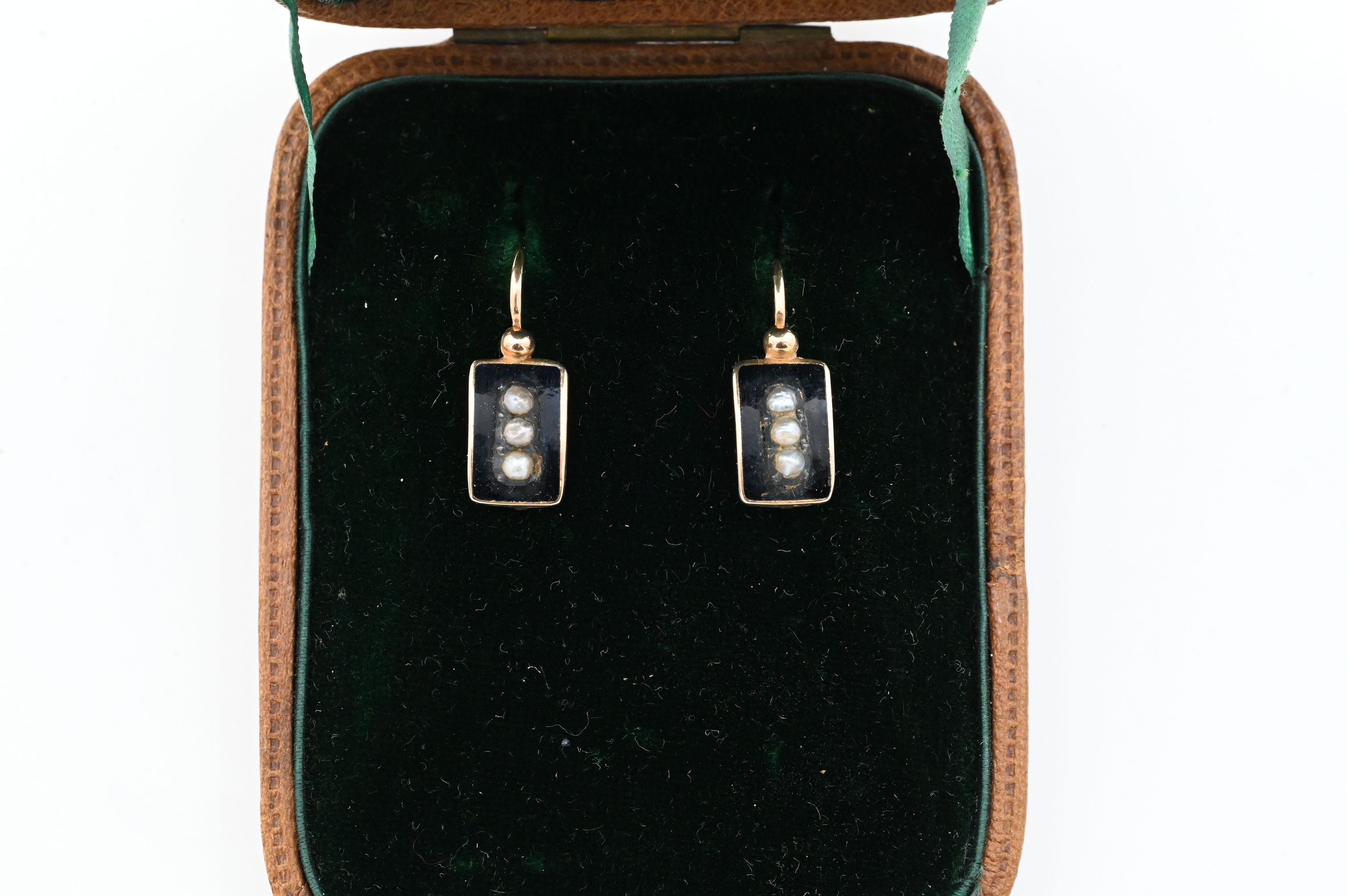Pair of 18K Yellow Gold Pearl and Enamel Earrings