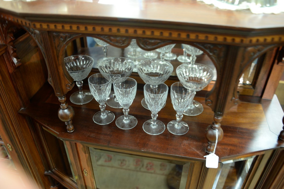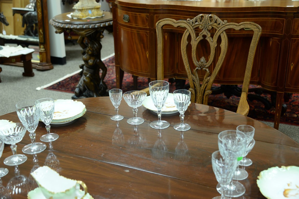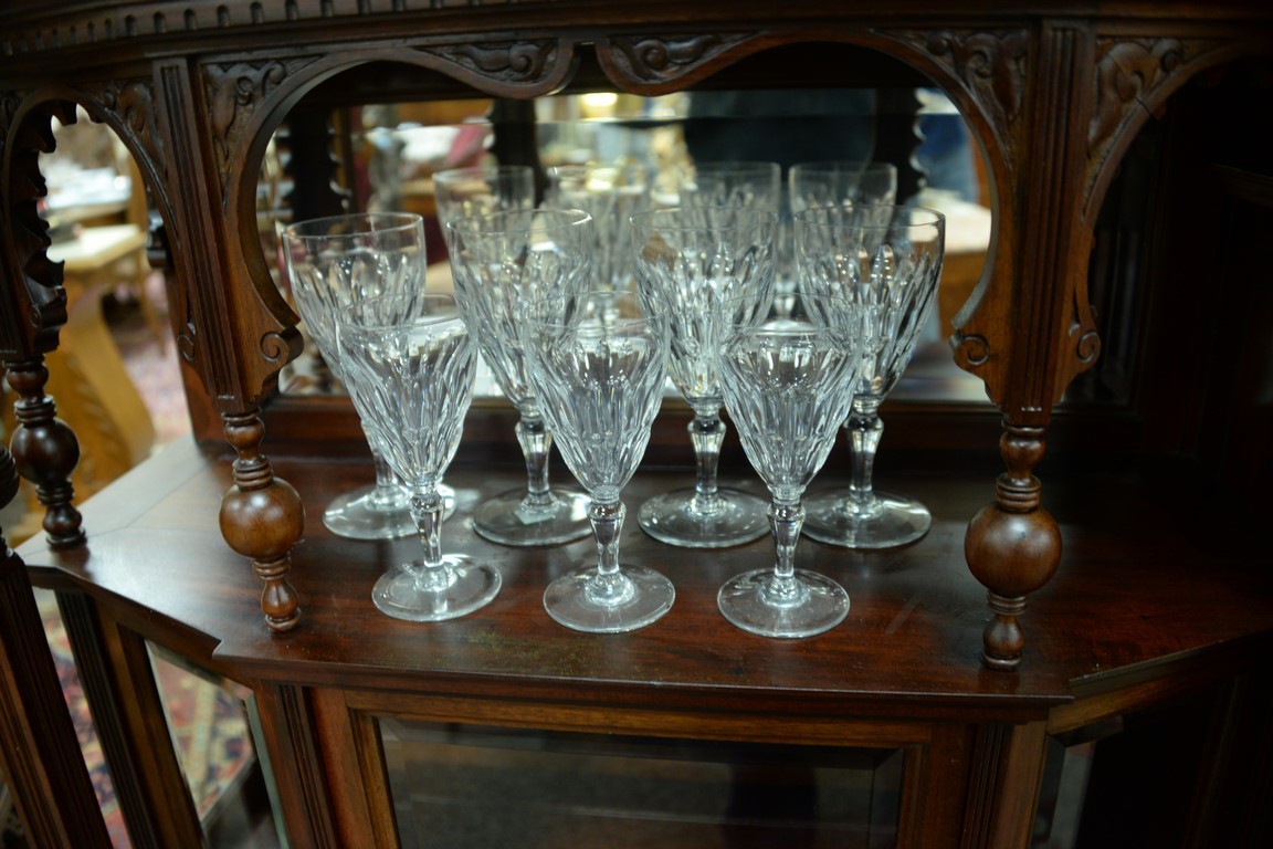Three arts and crafts metal lamps, one floor lamp, two table lamps.