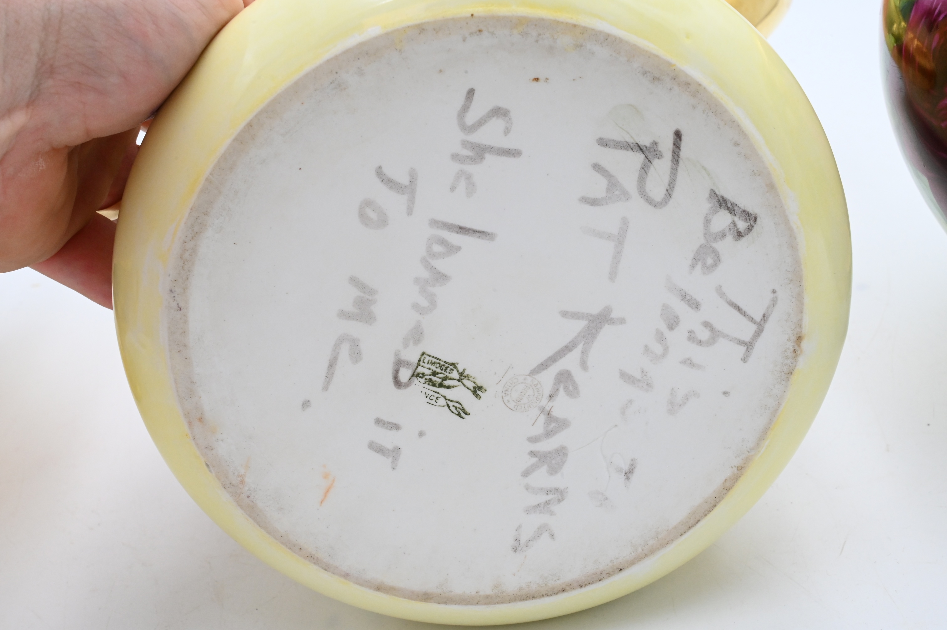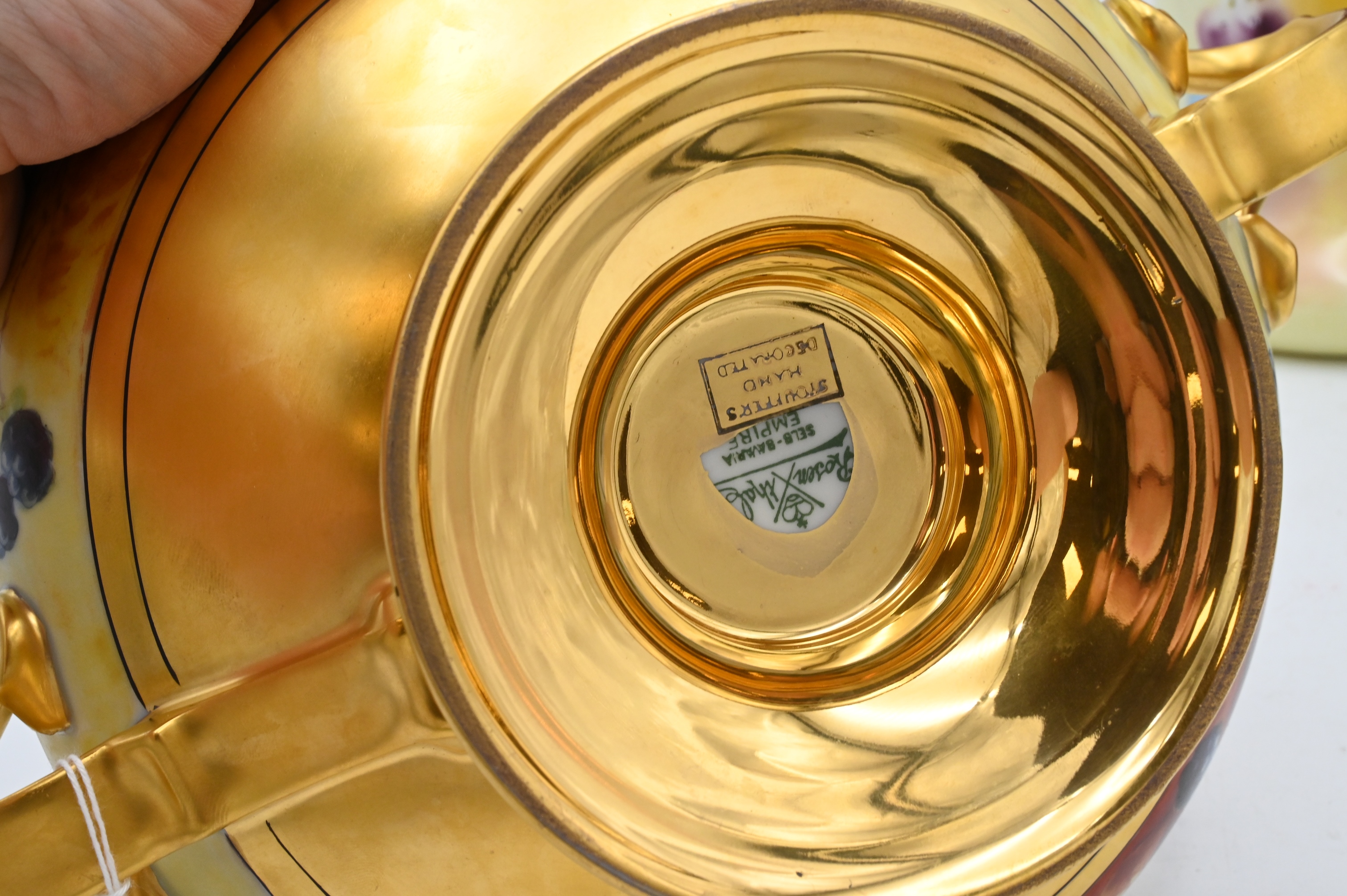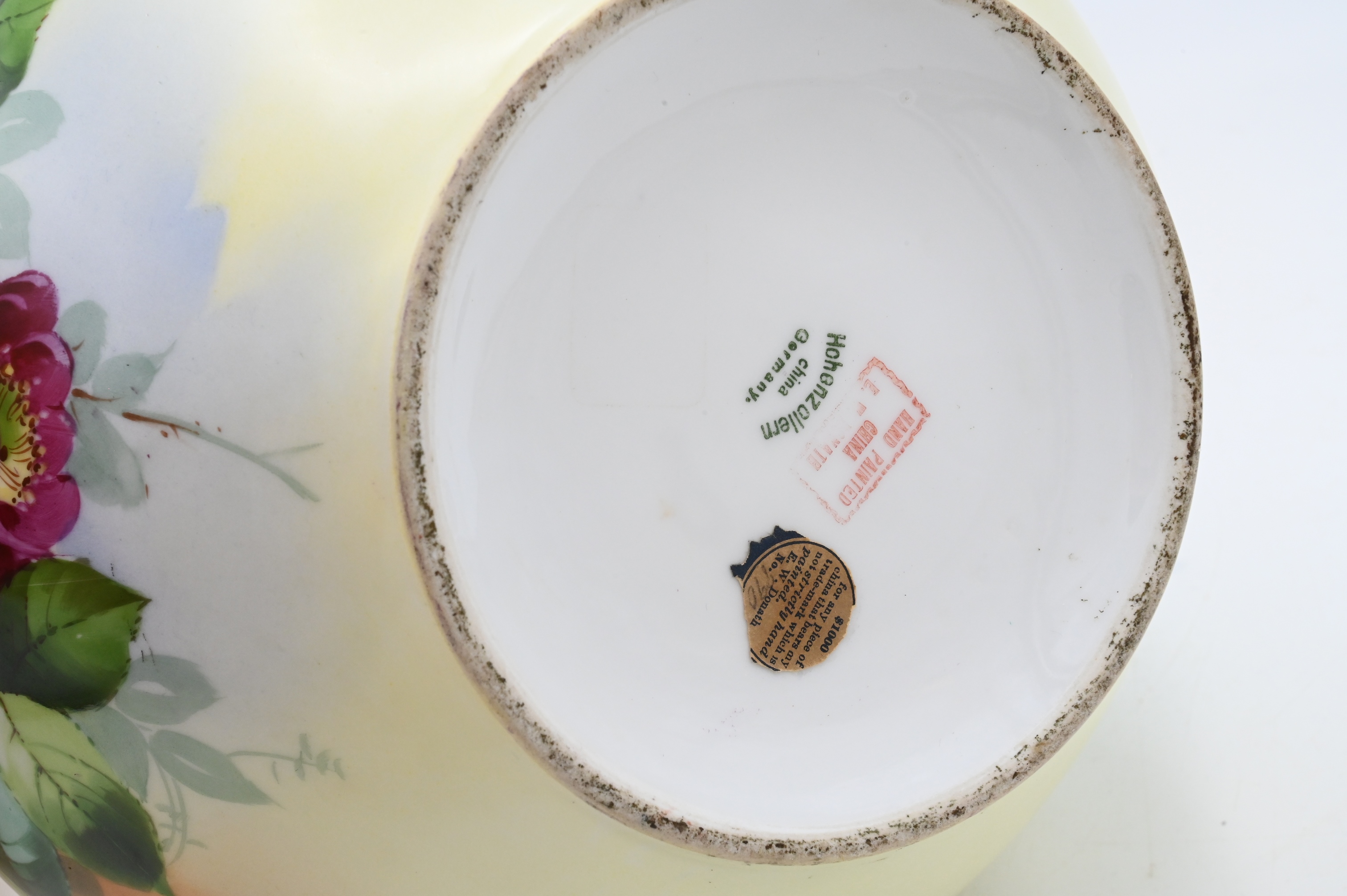 Three Hand Painted Porcelain Group, to include large Limoges Ewer Pitcher having hand painted fruit signed Rosenthal, Bavaria handled fruit bowl and Donath flower bowl, height of pitcher 16 inches, diameter of Donath bowl 8 inches.