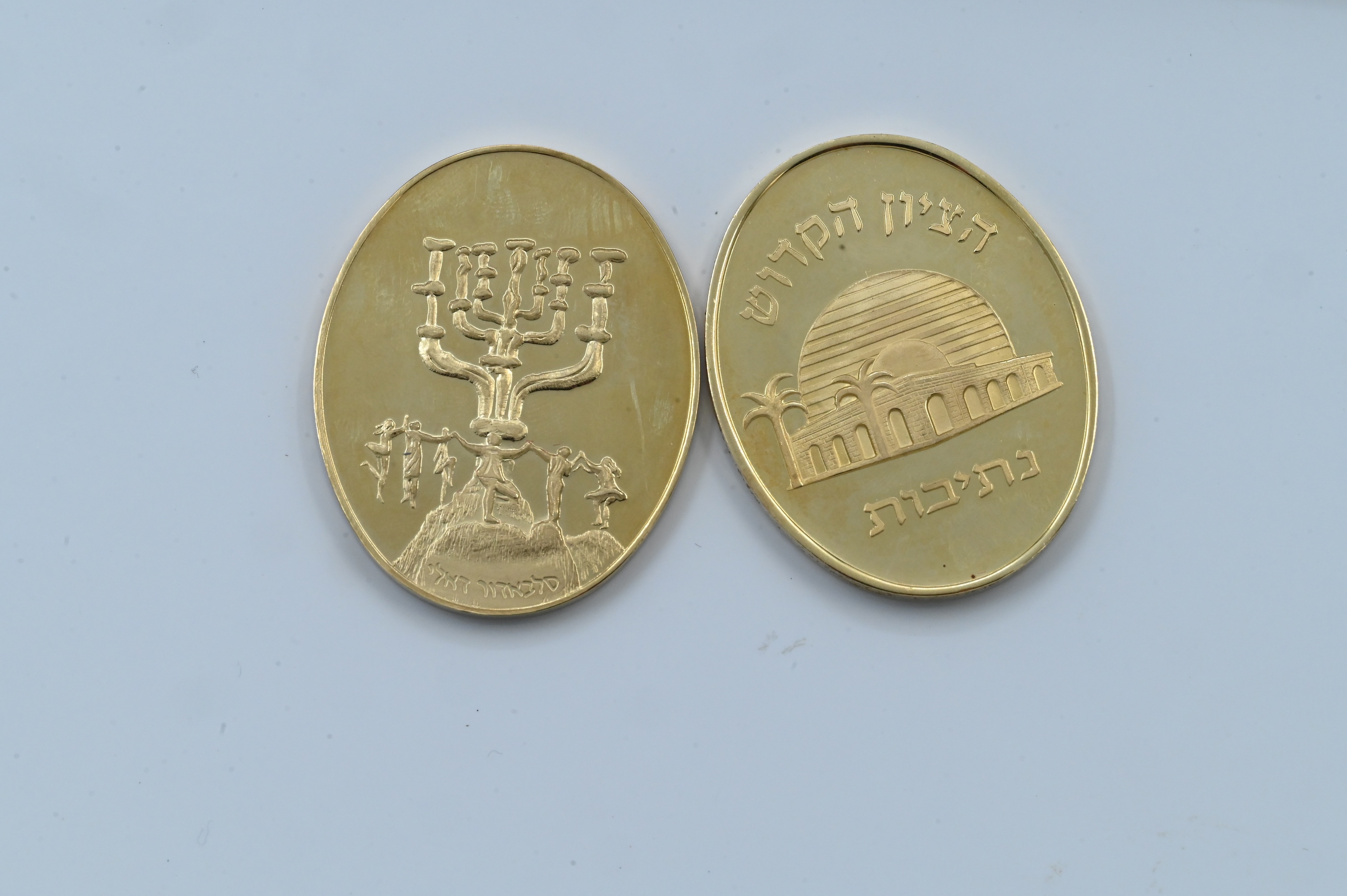 Lot 147: Three State of Israel 18k Gold and Enamel Art Medals