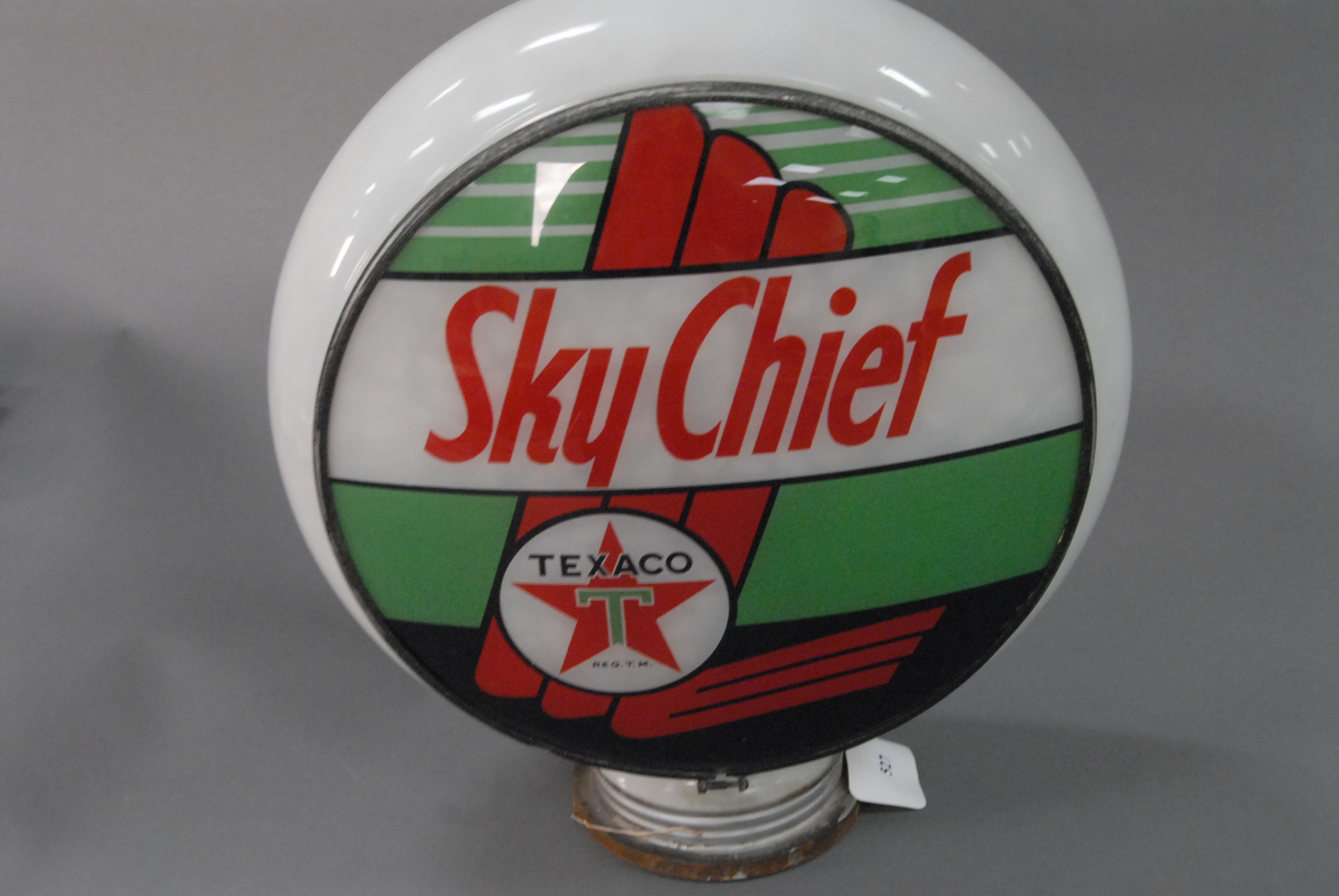 Vintage Sky Chief Texaco glass gas pump globe, dia. 15.