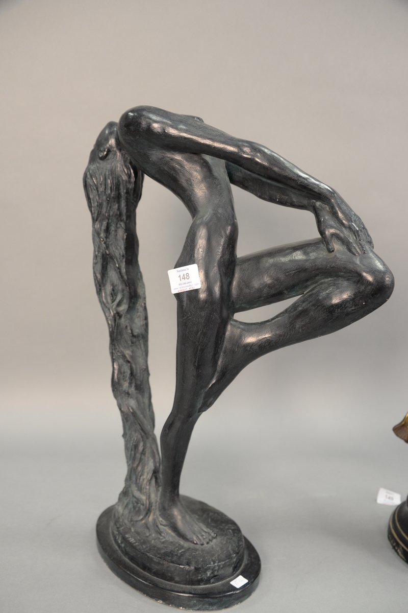 Austin Prod Inc. art nouveau nude sculpture of a woman with long hair. ht. 21in.