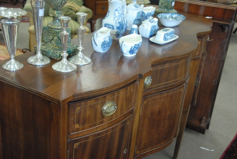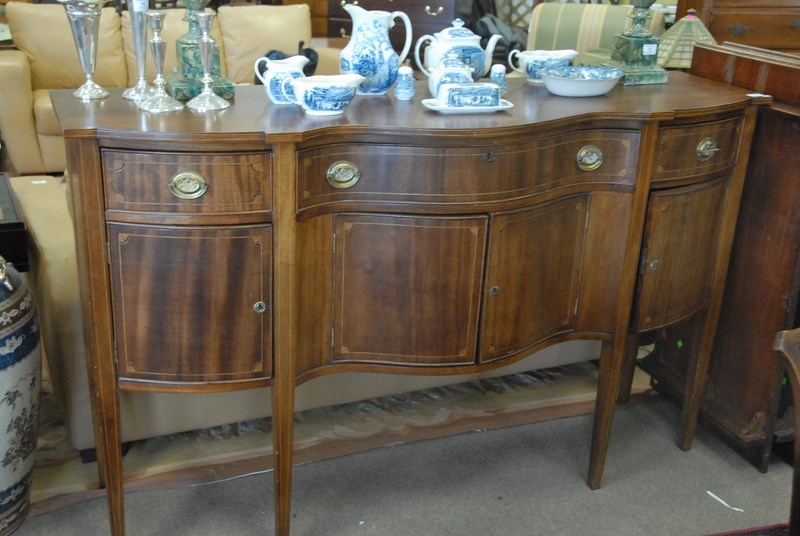 Custom mahogany Federal style sideboard with fan and line inlays.