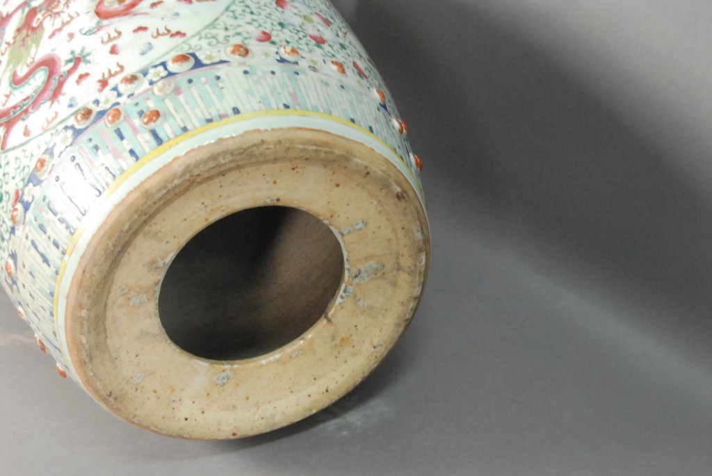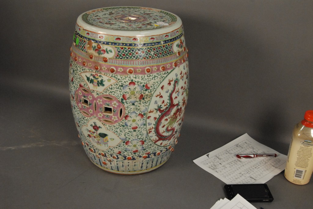 Famille Rose dragon / phoenix bird garden seat, ht. 18, dia. of top 12.